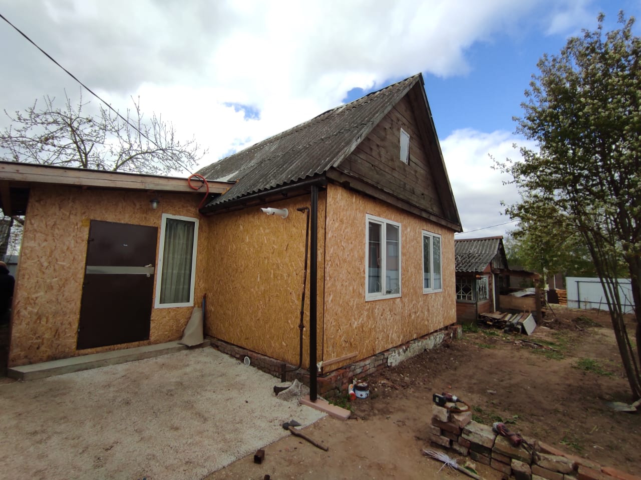 Продается жилой дом в г. Александров, район Попова гора по ул. Речная. Дом общей площадью 48,4 кв.м., состоит из кухни-гостиной 25 кв.м., спальни 13,6 кв.м., совмещенного санузла и прихожей. Коммуникации: Электричество, газ, центральная холодная вода, отопление и горячая вода от газового котла, канализация - септик. Дом новый, построен из ОСБ панелей по каркасной технологии, утеплён, внутри сделана отделка, частично есть мебель. Земельный участок площадью 4 сотки, огорожен по периметру забором из профлиста, есть калитка и ворота.