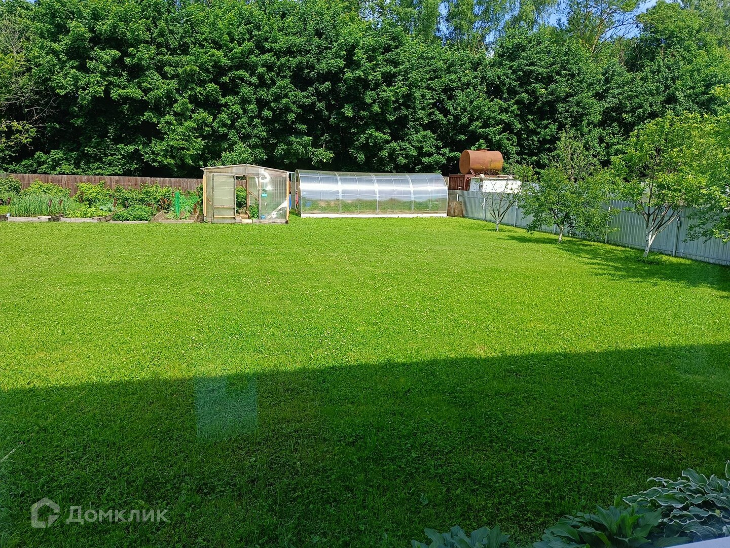 Участок ухоженный с плодородной почвой, правильной прямоугольной формы, 20 соток. На участке: газон, теплица,