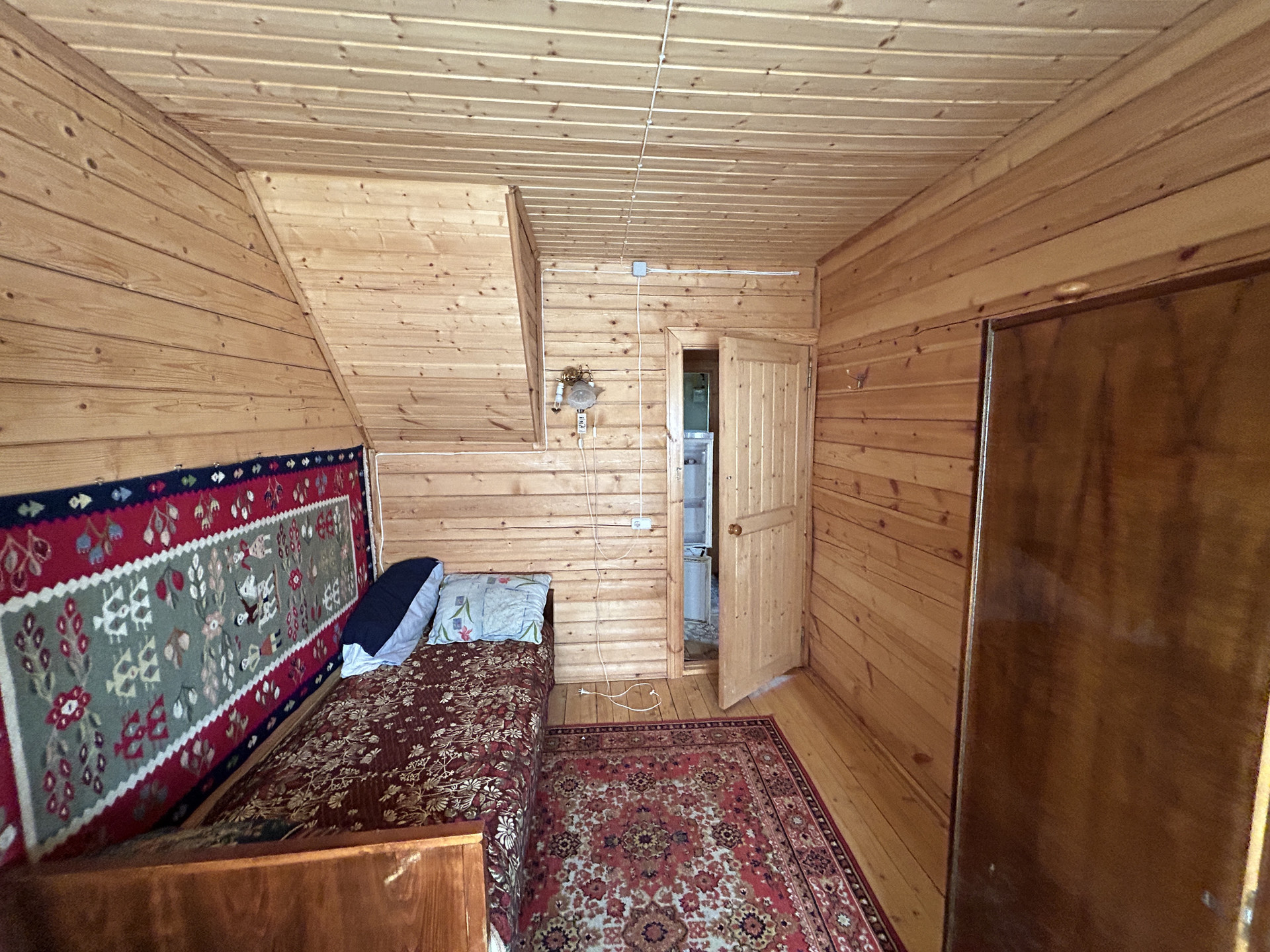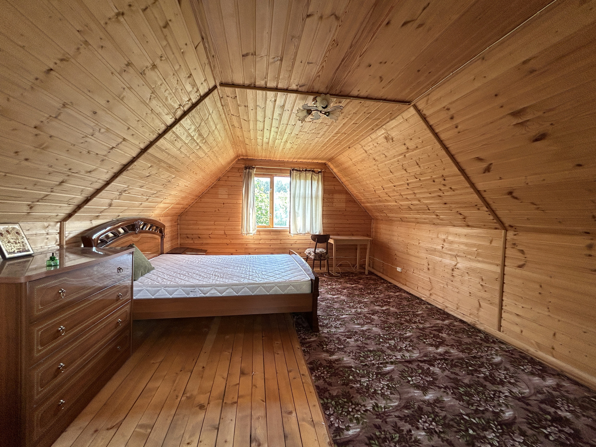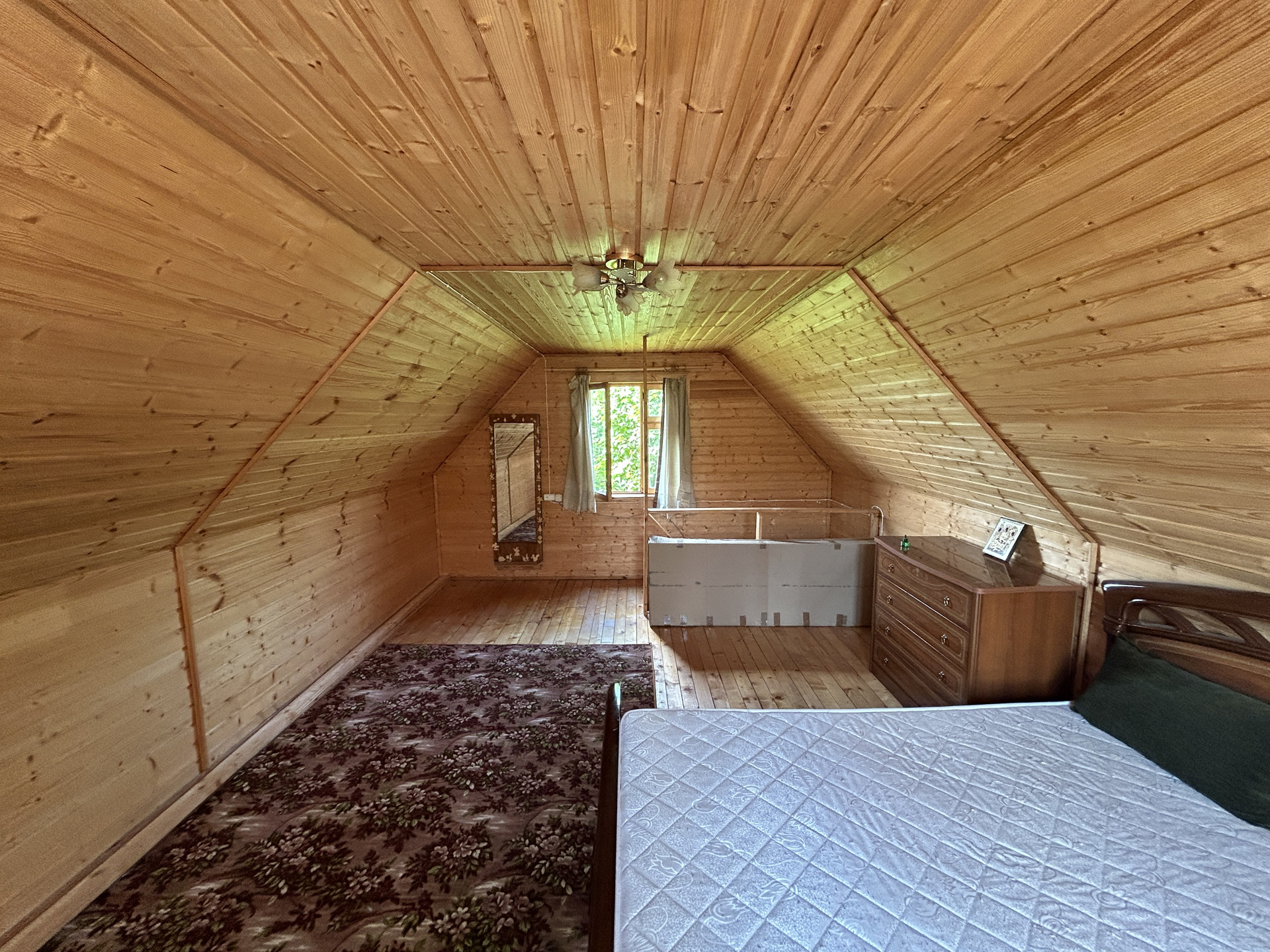 ДОМ-ДАЧА: Дача-дом брусовая (брус 150*150 мм. профилированный), двухэтажная (второй этаж мансарда), на столбчато-опорном фундаменте из фундаментальных блоков, размером 6 метра на 8,5 метров, общей площадью 74 кв. м. Год постройки 2015. Снаружи и внутри - отделочная доска и вагонка. В доме вставлены деревянные окна, металлическая дверь и ставни (жалюзи новые). Крыша - ондулин. Полы в даче дощатые, утеплены (20 мм). Первый этаж- брус, второй этаж- щитовой, не утеплен. На первом этаже: терраса 6,2 кв. м., кухня 4,8 кв. м., душевая комната 2,1 кв. м. и две комнаты: 17,5 кв .м. и 9,8 кв. м. На втором этаже - одна большая комната 23,3 кв. м. Дом в отличном состоянии, сухой, ухоженный. Вся мебель и сантехника новая.