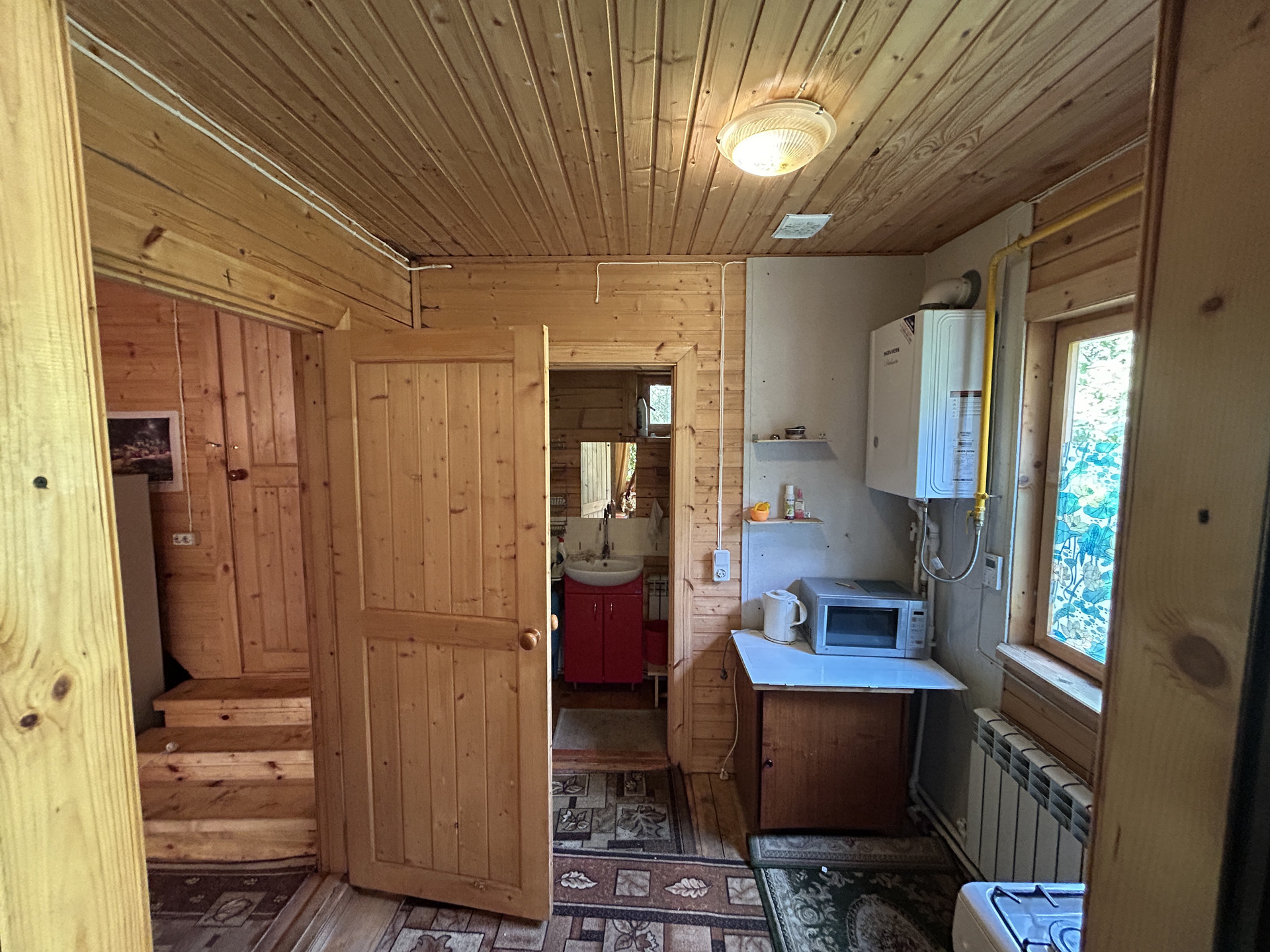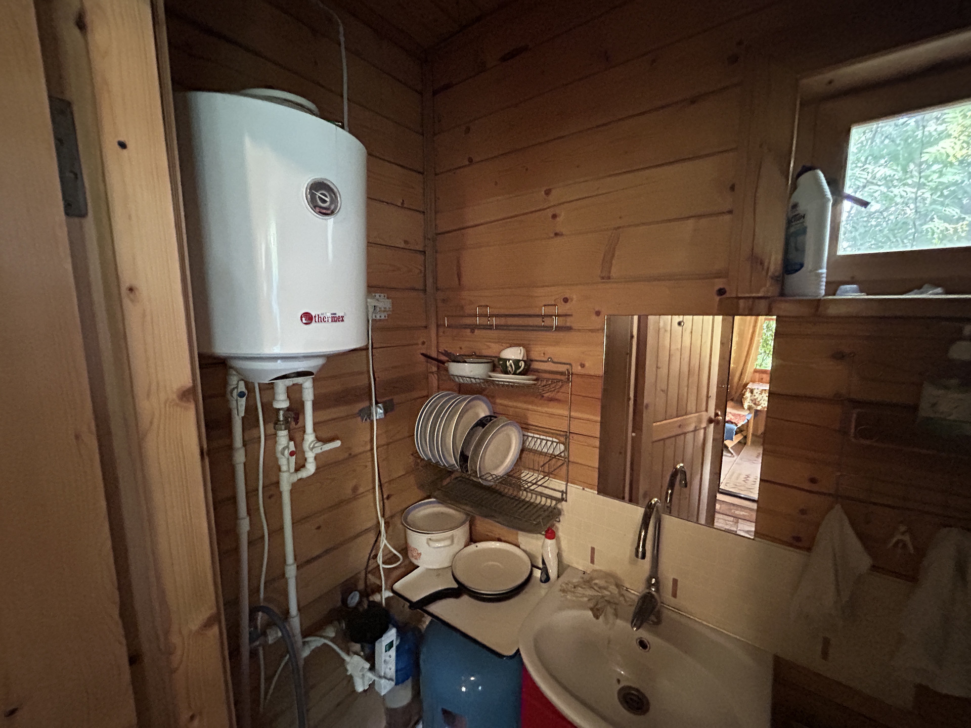КОММУНИКАЦИИ: Электричество подведено, подключено и разведено по дому - установлен электросчетчик в доме - 15 кВт (220 Вольт). Водопровод - собственная скважина с отличной питьевой водой, глубиной 35 метров, проведена в дом. Так же есть поливочный водопровод, который разведен по участку. Горячая вода от водонагревателя. Отопление газовое- установлен новый котел, счетчики и итальянские радиаторы, трубы разведены по всему дому первого этажа. Слив ( канализация) - выгребная яма (септик).