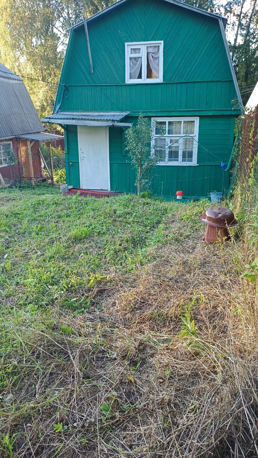 Участок: 8 соток, огорожен сеткой рабицей, растут разнообразные, плодоносящие кустарники, туалет уличный, свет подключён, есть возможность подключение газа.