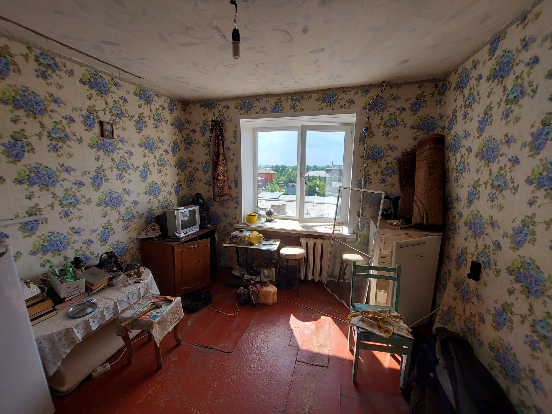 Комната сухая и тёплая, что делает её комфортной для проживания. Соседи в общежитии семейные, что обеспечивает спокойную атмосферу. Здание было построено в 1974 году.