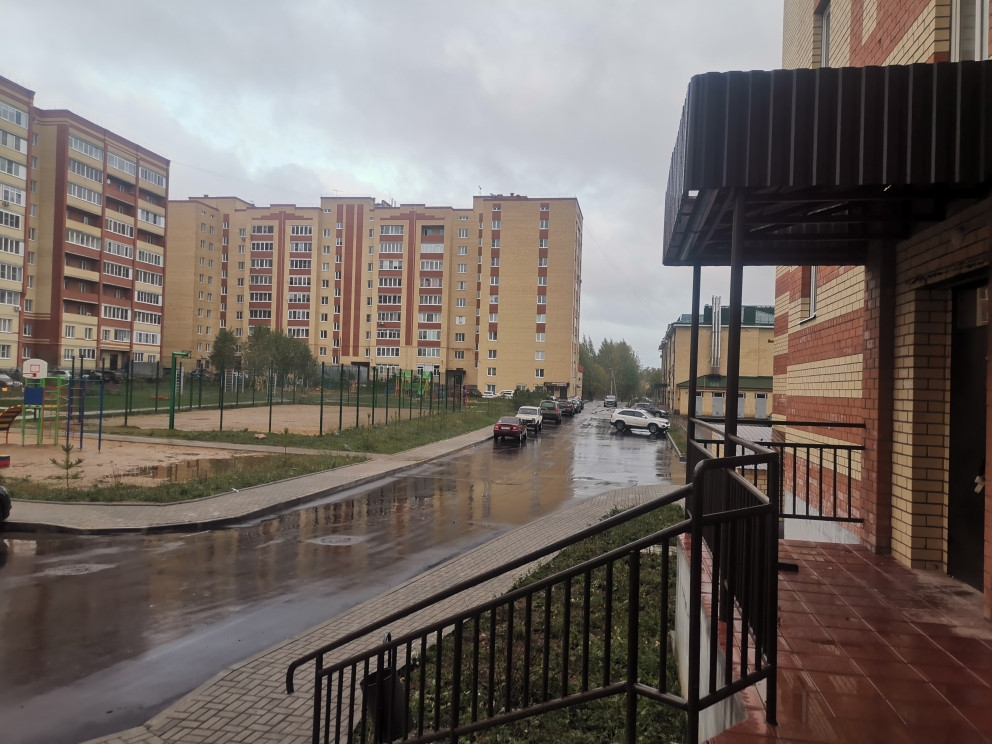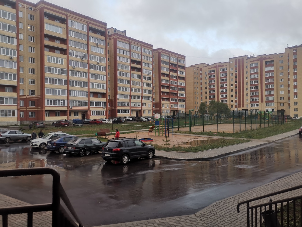 Во дворе детская и спортивная площадки, места для парковки, ухоженные газоны.