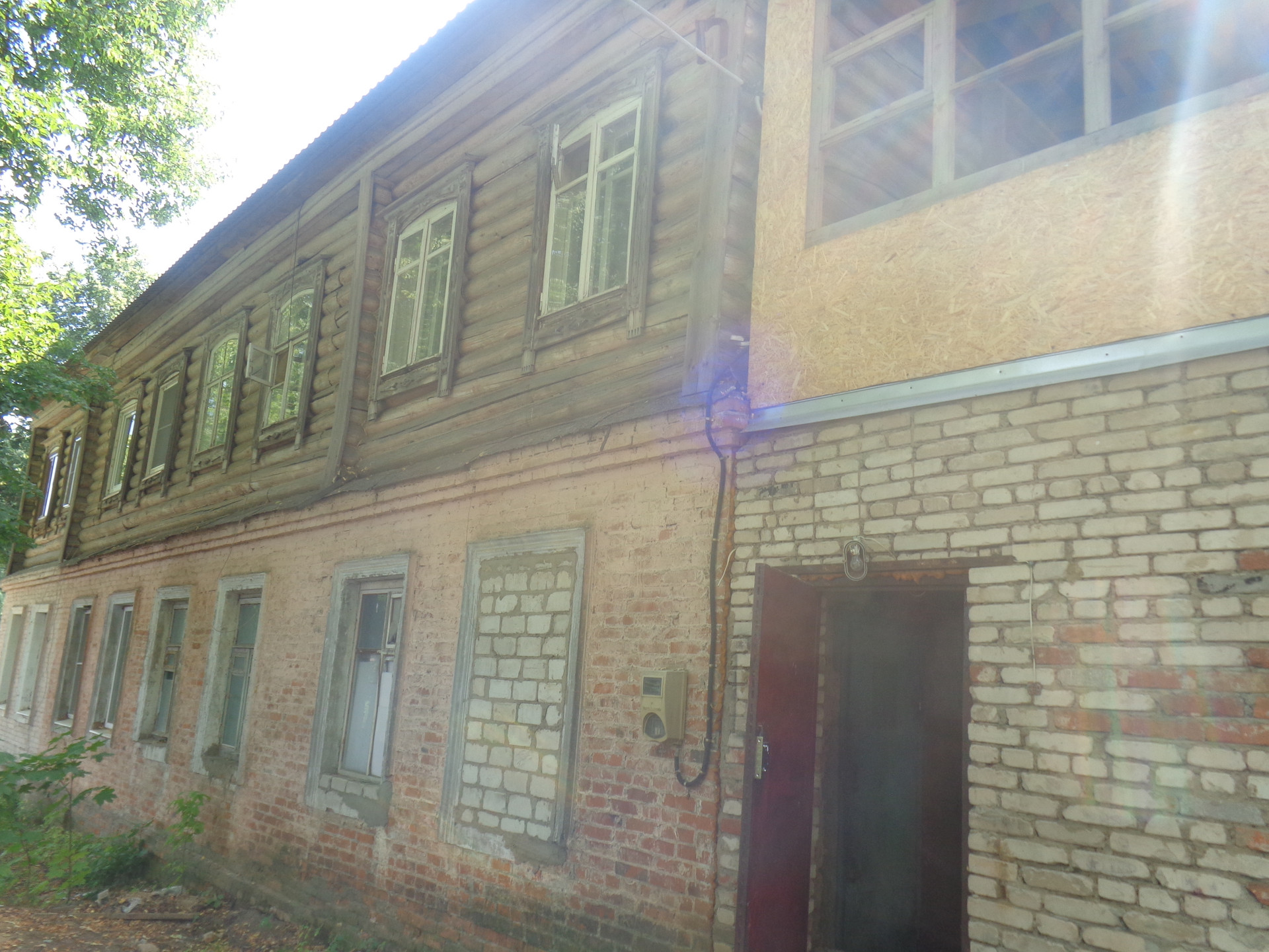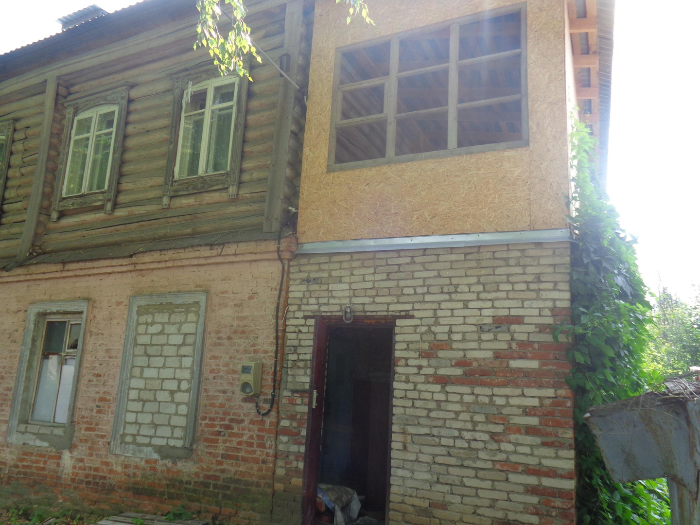 1 этаж-кирпичный; 2 этаж-бревенчатый, общей площадью 48 кв.м, в квартире  газ, свет,центральное водоснабжение , 2 комнаты изолированные, санузел совместный, окна выходят во двор,и на улицу, также в квартире 2 этажная пристройка, 1 этаж-18 кв; 2 этаж-20 кв.м