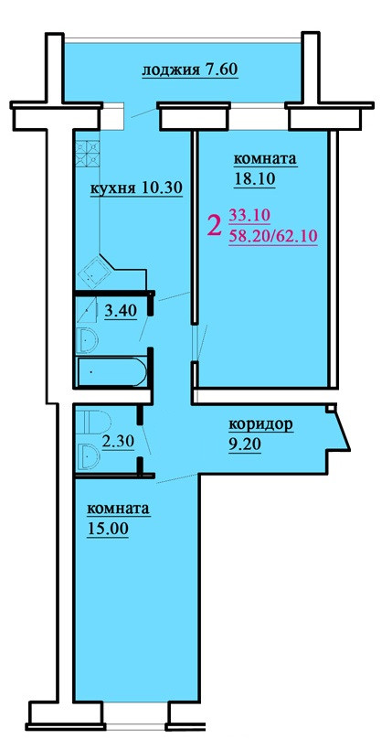 Общая площадь 58.2 м2