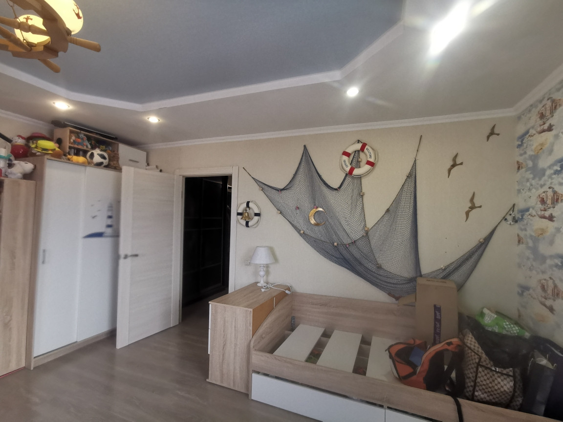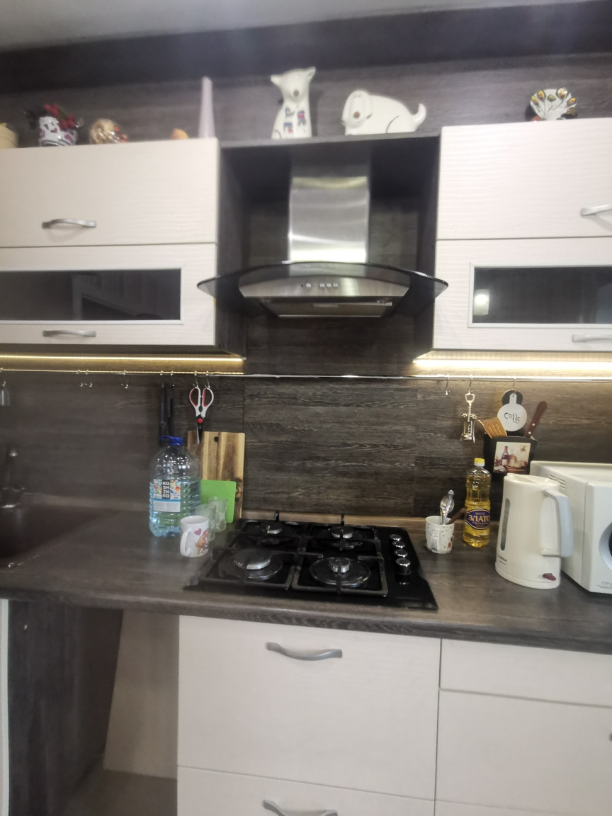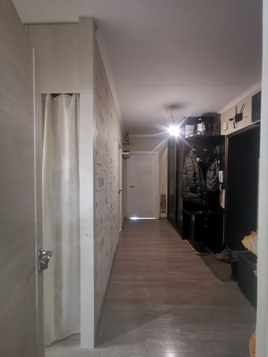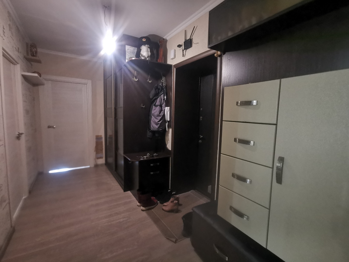 При продаже остаётся кухонный гарнитур, мебель в прихожей и спальне (шкафы-купе и тумбочки), осветительные приборы.