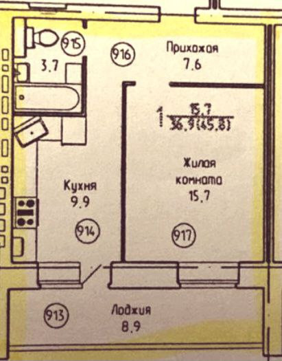 ✓ Площадью 37 метров, комната 16 метров, кухня 10 метров