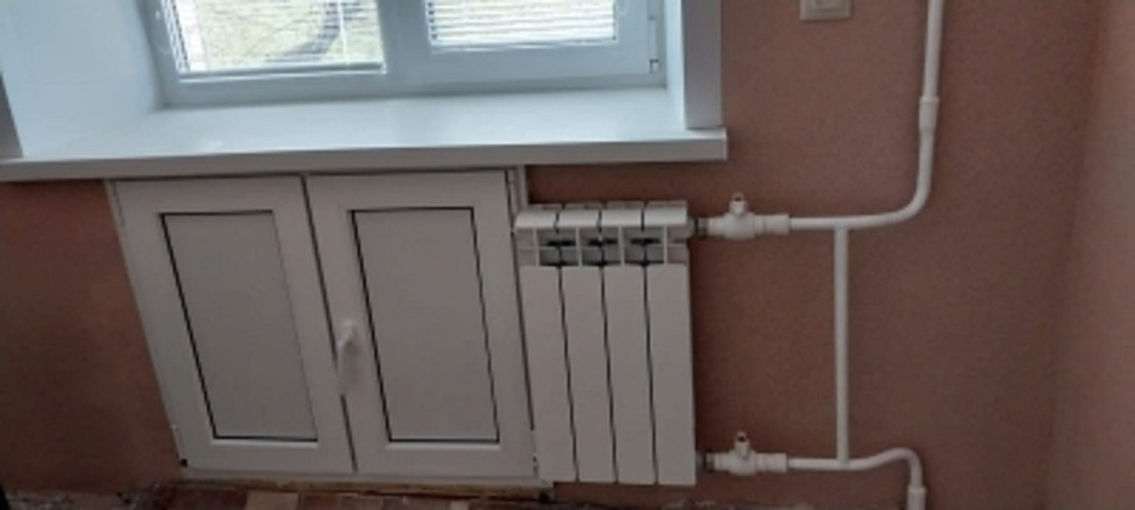 Установлены новые счётчики воды, трубы и радиаторы.