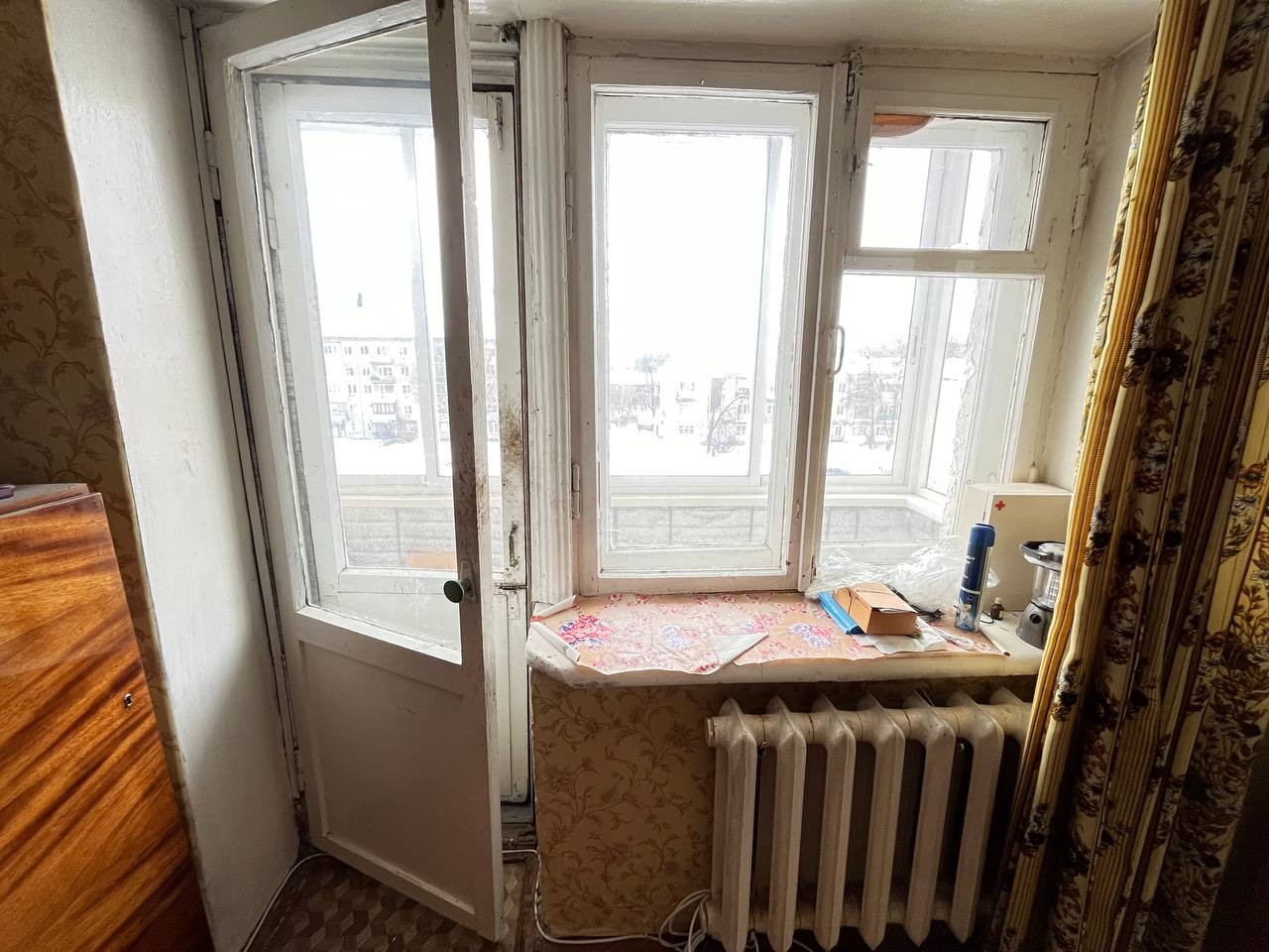 ✓ Окна деревянные, балкон застеклен
