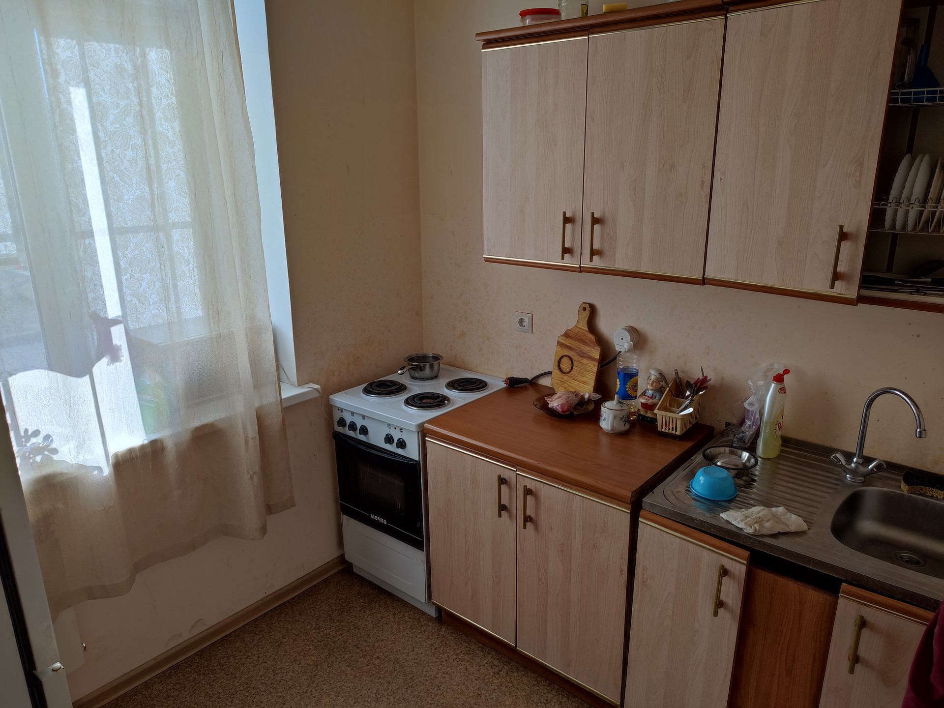 Кухня площадью 5,8 кв.м., комната 17 кв.м. с выходом на не остекленную лоджию, санузел совмещен.
