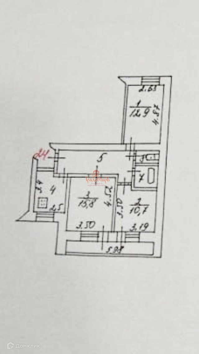 В квартире 3 просторных изолированных комнаты (12.9+10.7+15.8 кв.м.).
