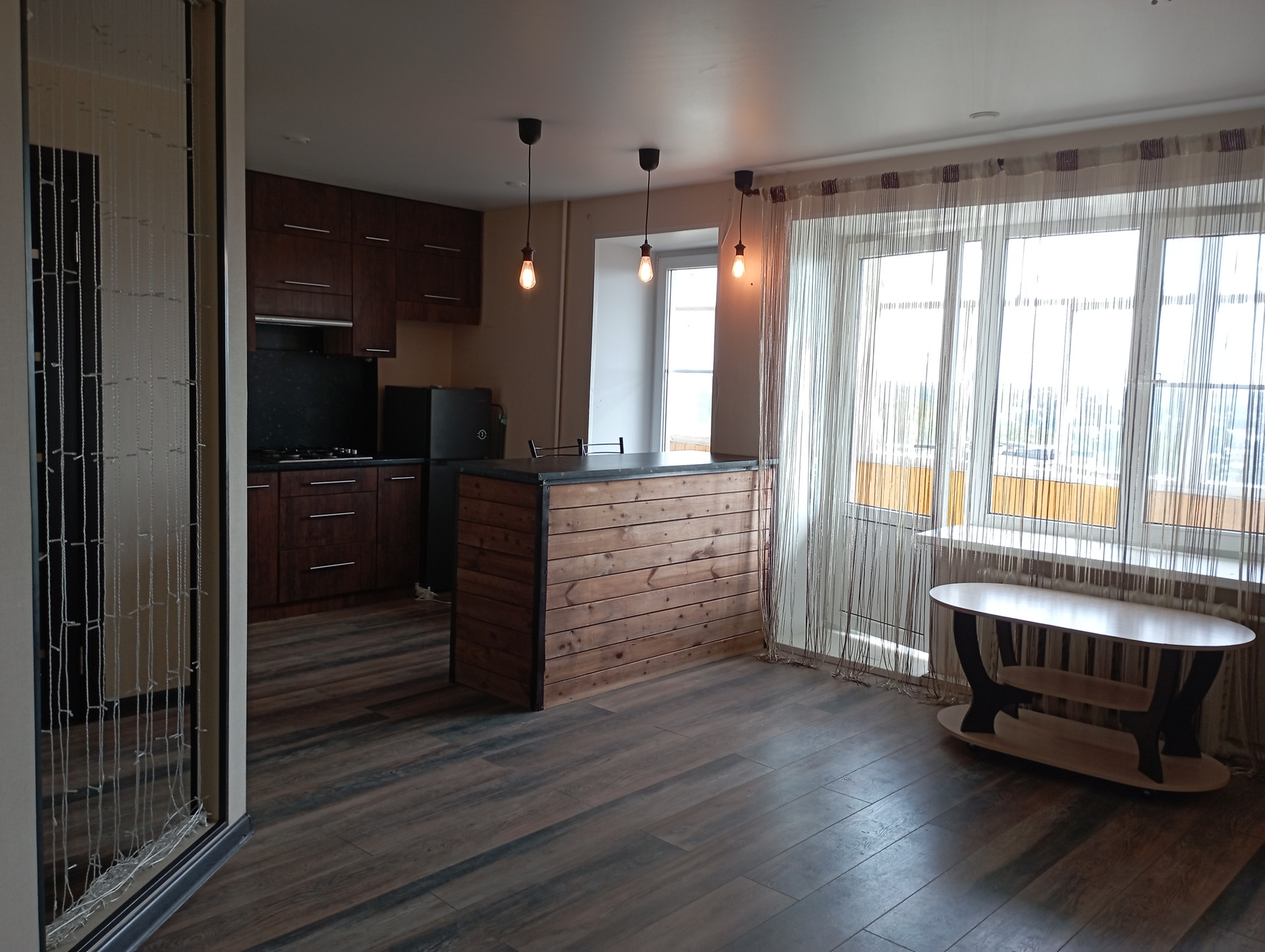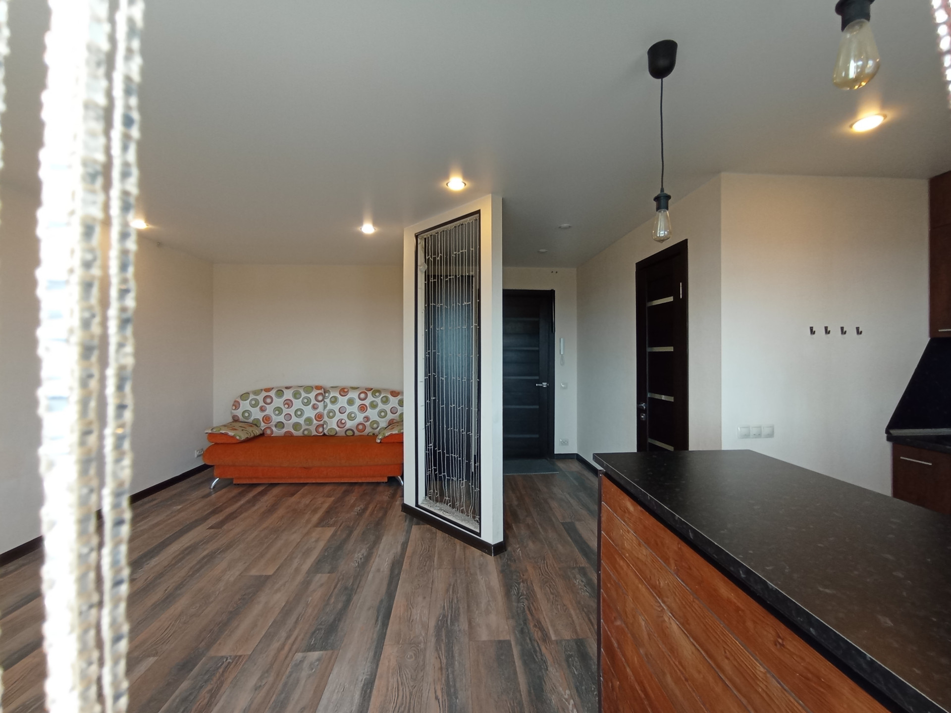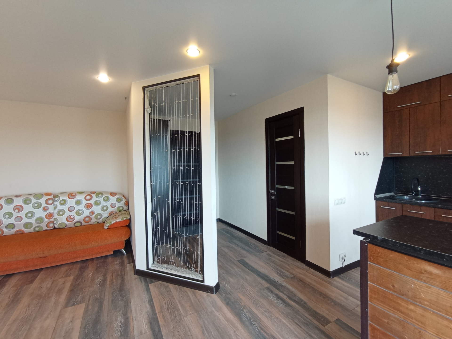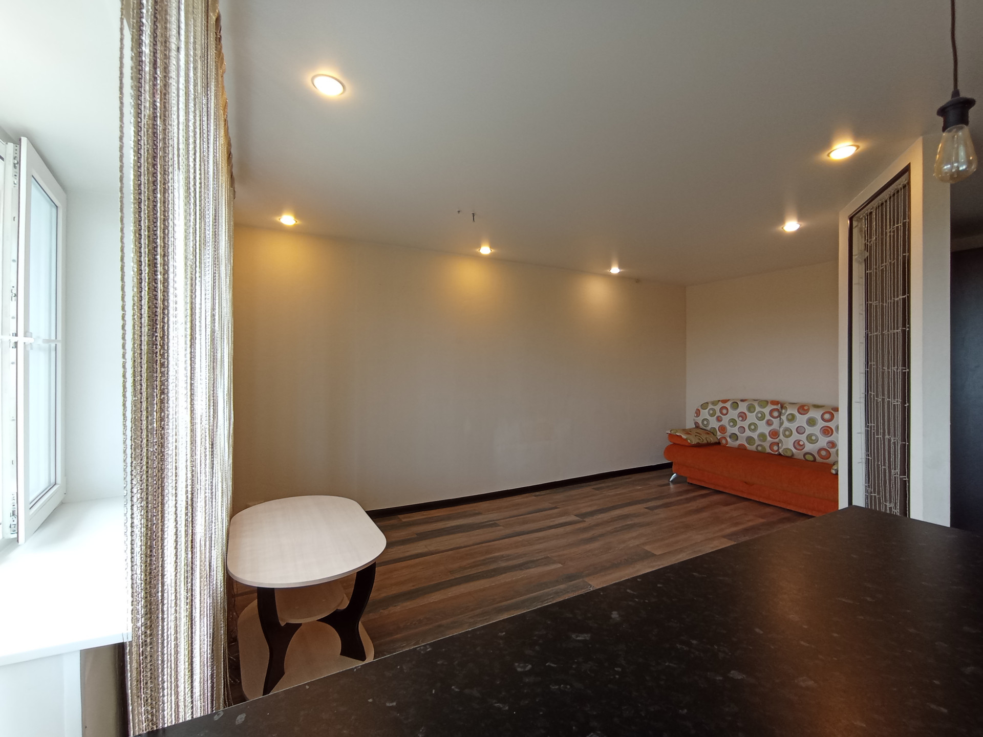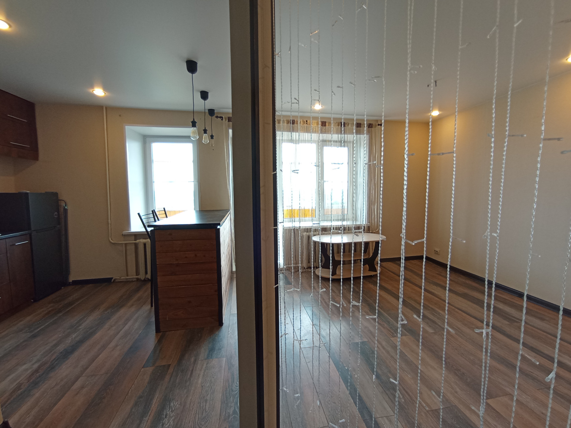 Площадь (без учёта лоджии) 31,5 кв.м., не угловая, тёплая, сухая. планировка индивидуальная с зонированием: кухня-6,8 кв.м., большая лоджия-6,6 кв.м., жилая комната-16,3 кв.м. Санузел совмещенный. Перепланировка узаконена. Профессиональный ремонт по дизайнерскому проекту из качественных отделочных материалов во всей квартире, пол в комнате-ламинат, стойкий к истиранию; в санузле напольное керамическое покрытие, потолки натяжные с встроенными светильниками. Электропроводка во всей квартире заменена, увеличено количество розеток. Сантехника исправная, чистая. Эстетично, удобно. В квартире новые двойные стеклопакеты, остекление лоджии-деревянные рамы. Входная дверь повышенной прочности и надёжности. Квартира не требует ремонта, находилась в бережном пользовании, сразу пригодна для проживания. Коммунальные расходы невысокие.