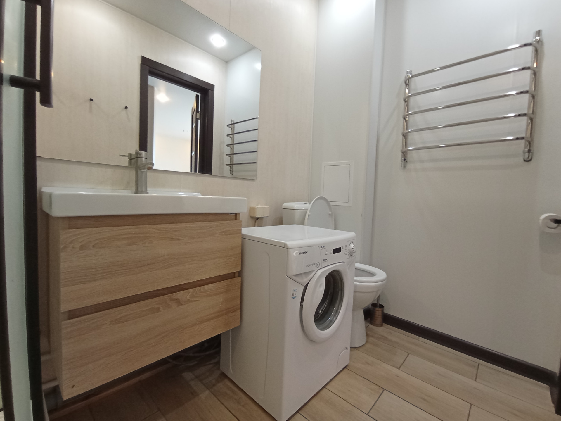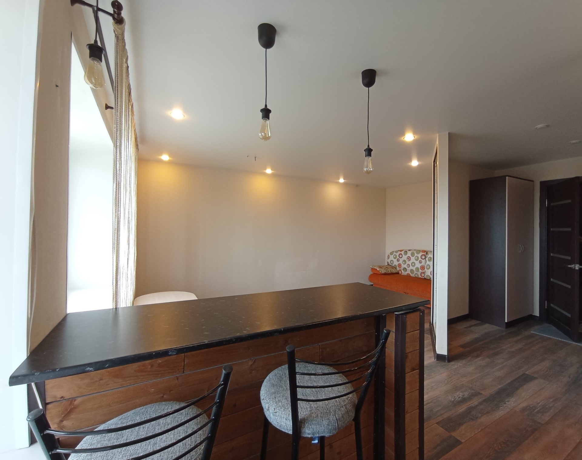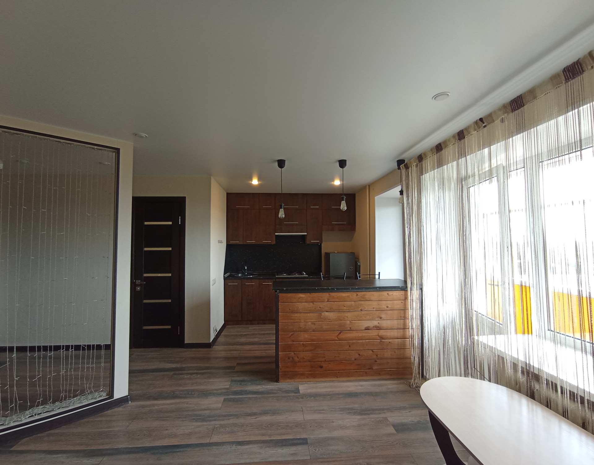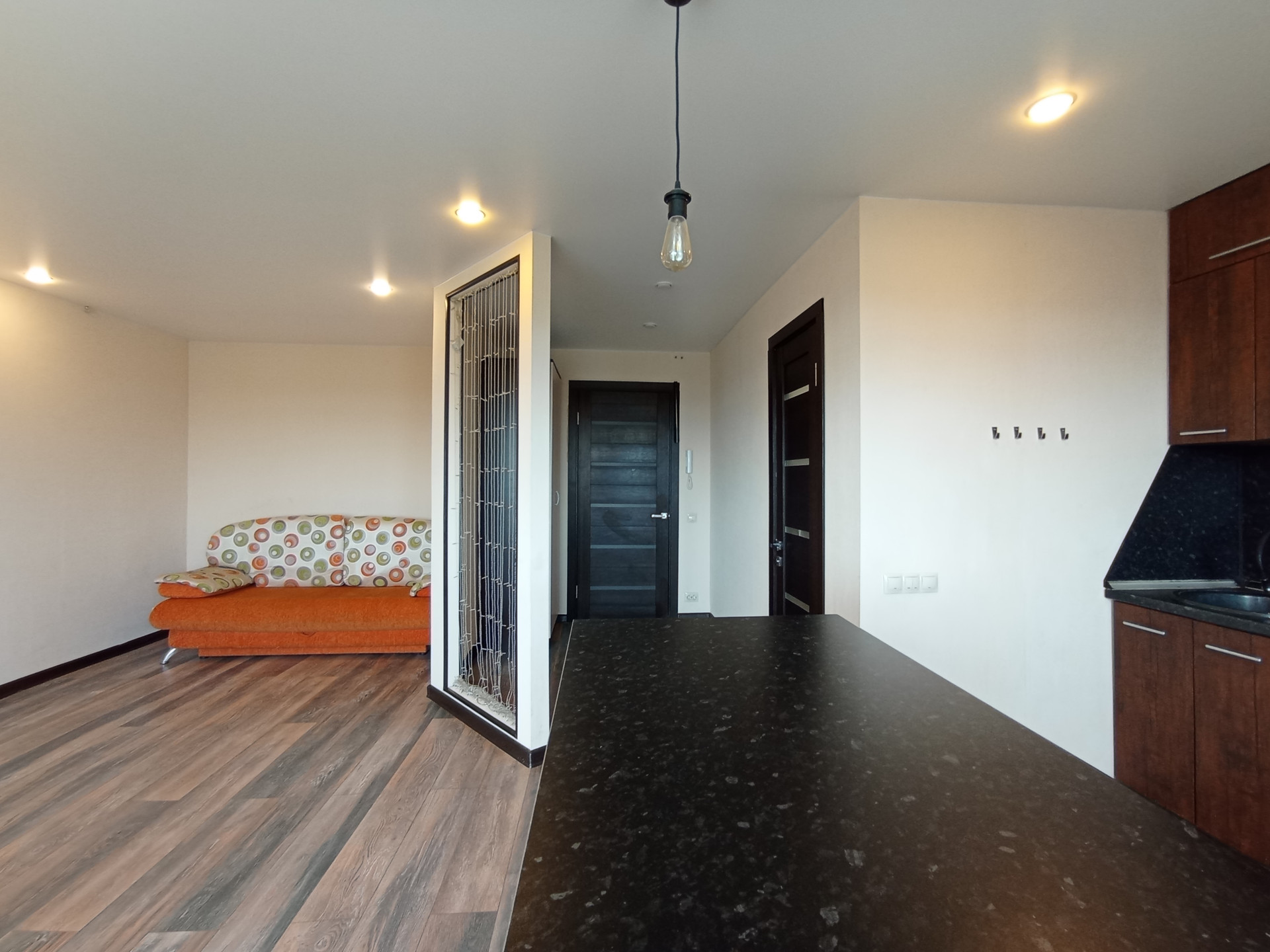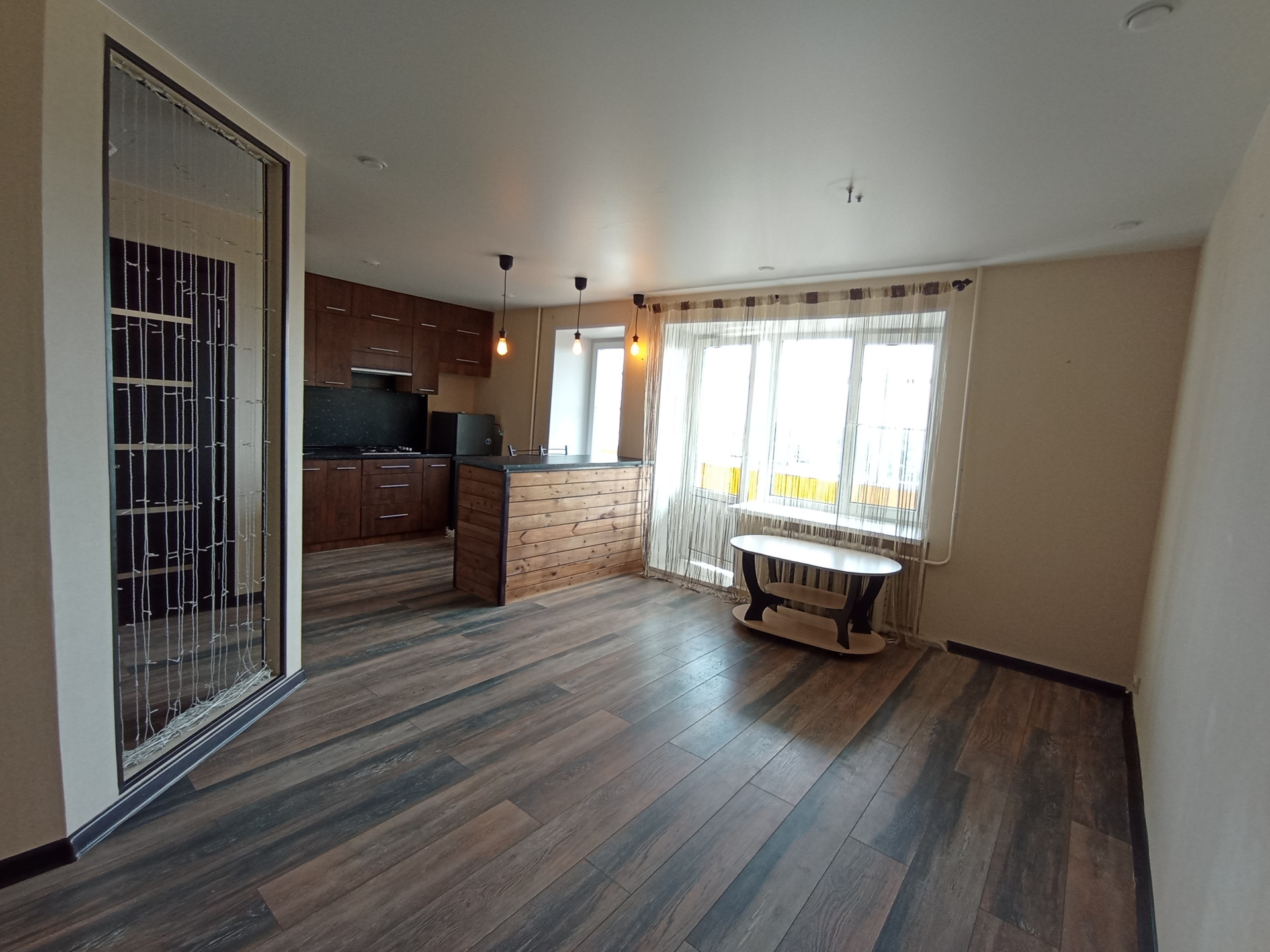 Площадь (без учёта лоджии) 31,5 кв.м., не угловая, тёплая, сухая. планировка индивидуальная с зонированием: кухня-6,8 кв.м., большая лоджия-6,6 кв.м., жилая комната-16,3 кв.м. Санузел совмещенный. Перепланировка узаконена. Профессиональный ремонт по дизайнерскому проекту из качественных отделочных материалов во всей квартире, пол в комнате-ламинат, стойкий к истиранию; в санузле напольное керамическое покрытие, потолки натяжные с встроенными светильниками. Электропроводка во всей квартире заменена, увеличено количество розеток. Сантехника исправная, чистая. Эстетично, удобно. В квартире новые двойные стеклопакеты, остекление лоджии-деревянные рамы. Входная дверь повышенной прочности и надёжности. Квартира не требует ремонта, находилась в бережном пользовании, сразу пригодна для проживания. Коммунальные расходы невысокие.