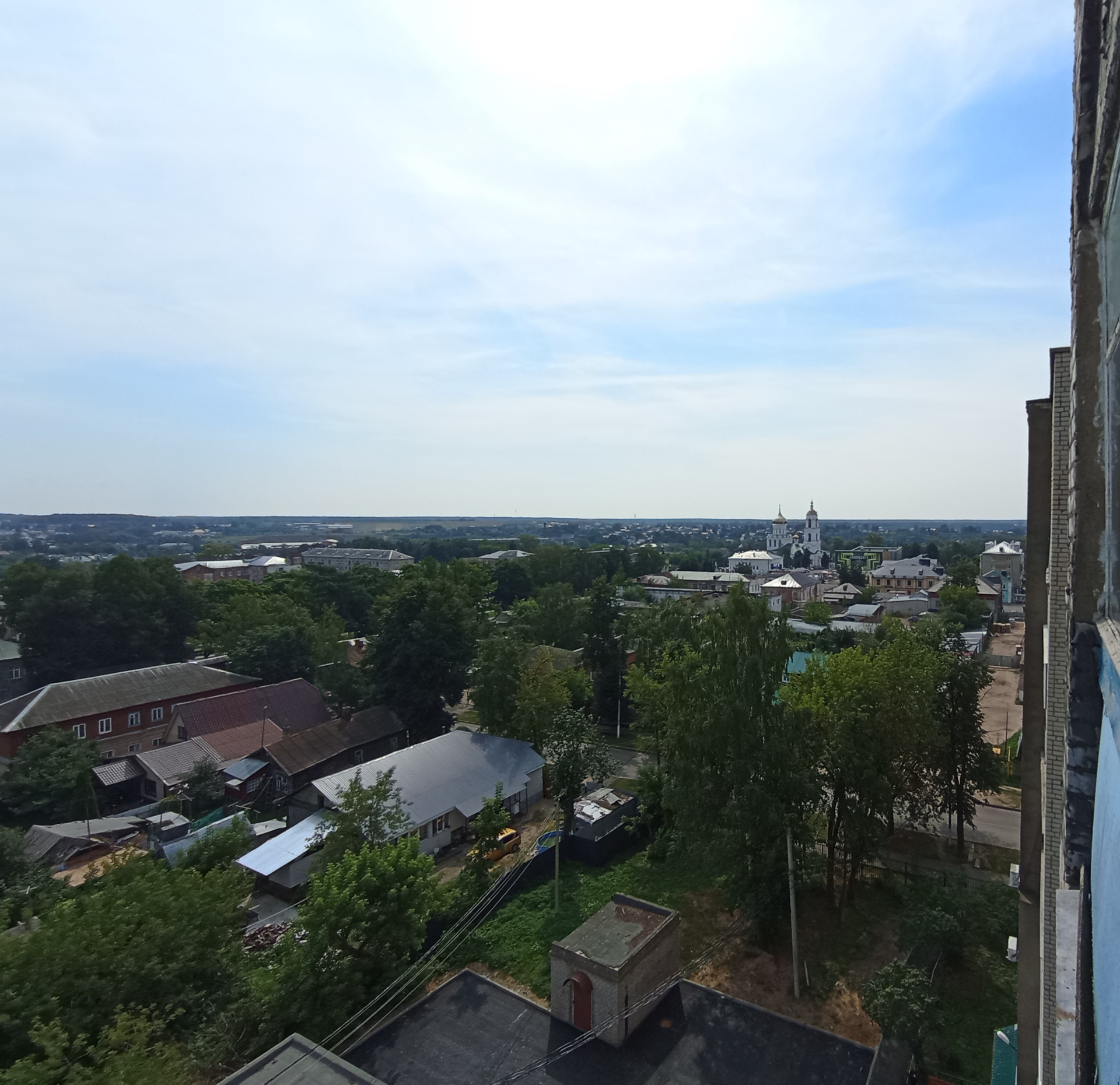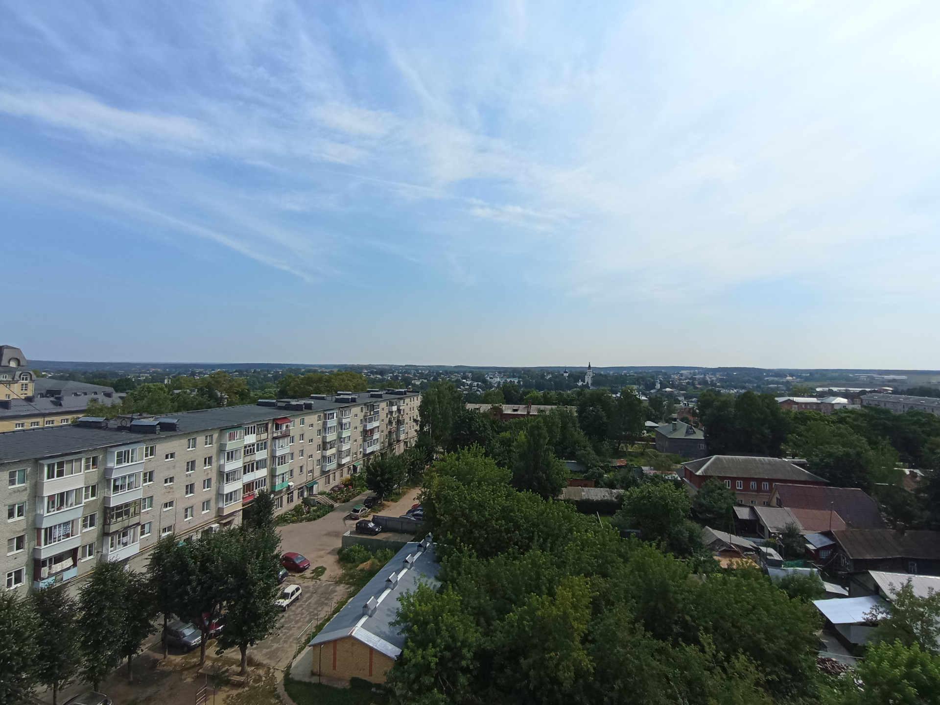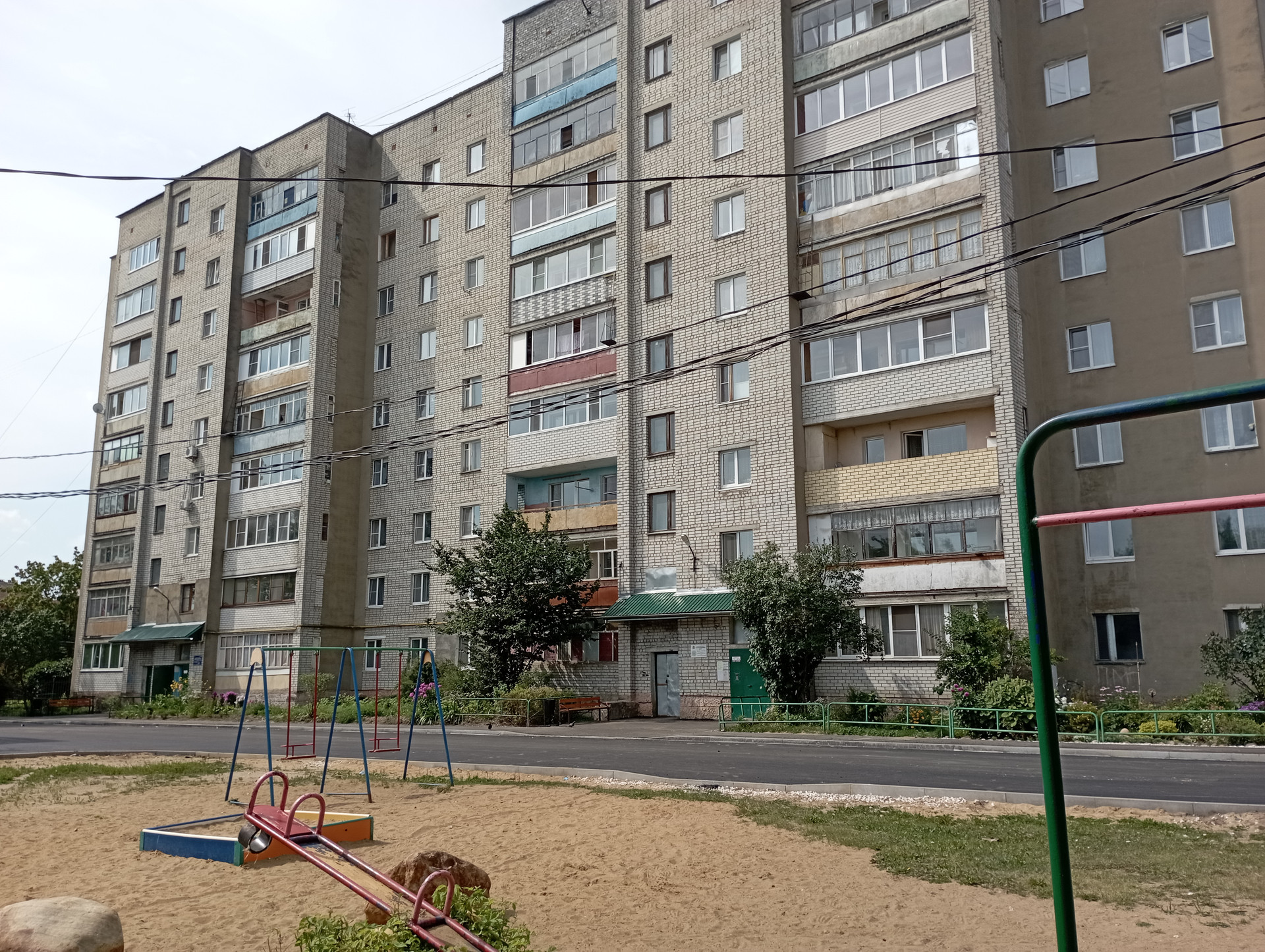 Видовые характеристики отличные-окна выходят во двор и сектор частной застройки с проекцией на монастырь и площадь. У дома внутренний благоустроенный двор, оборудована детская и спортивная площадки, места для парковки имеются, закрытая территория-при домовая территория огорожена.