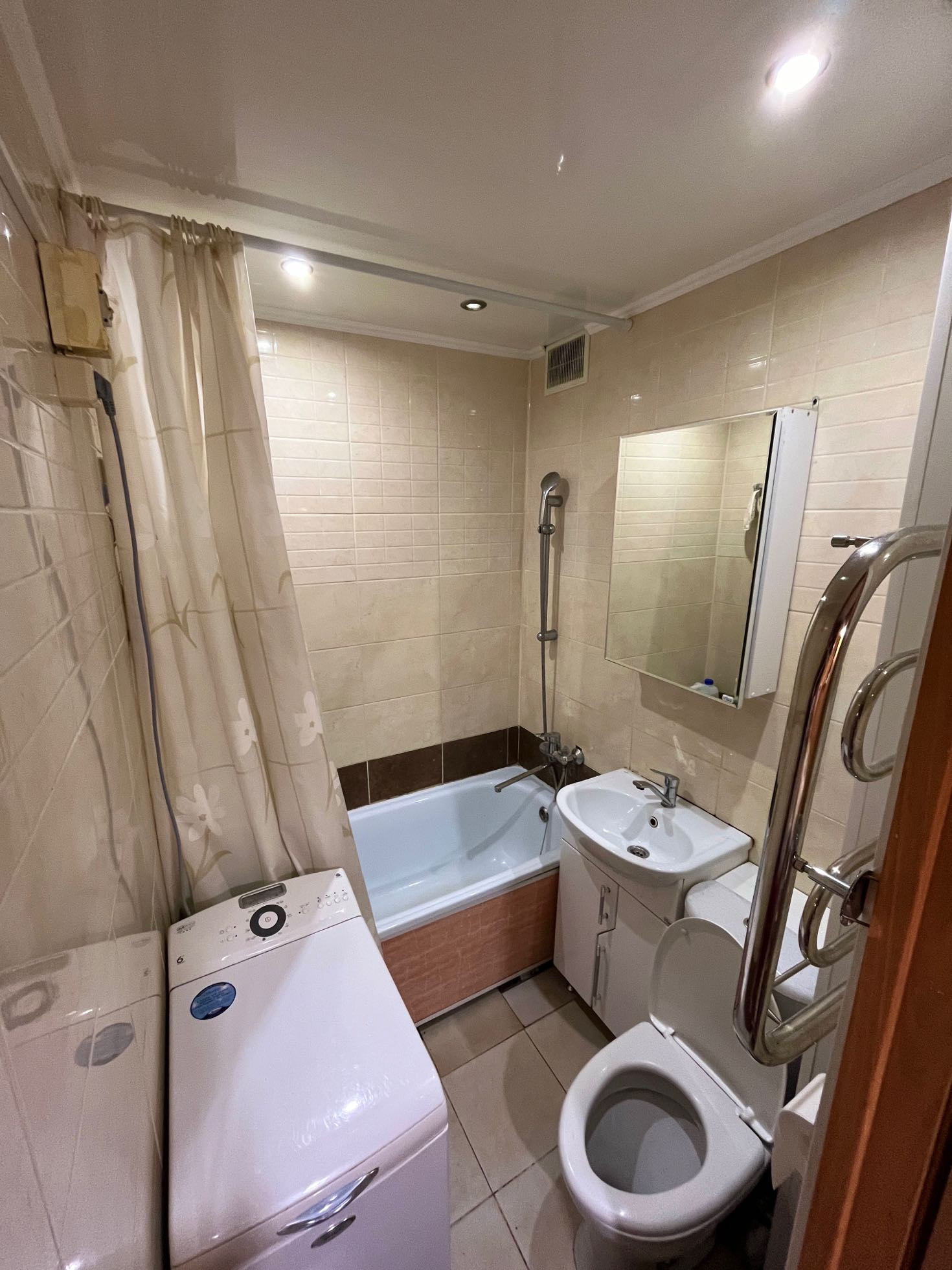 Квартира на втором этаже, не угловая, совмещен с/у в плитке.