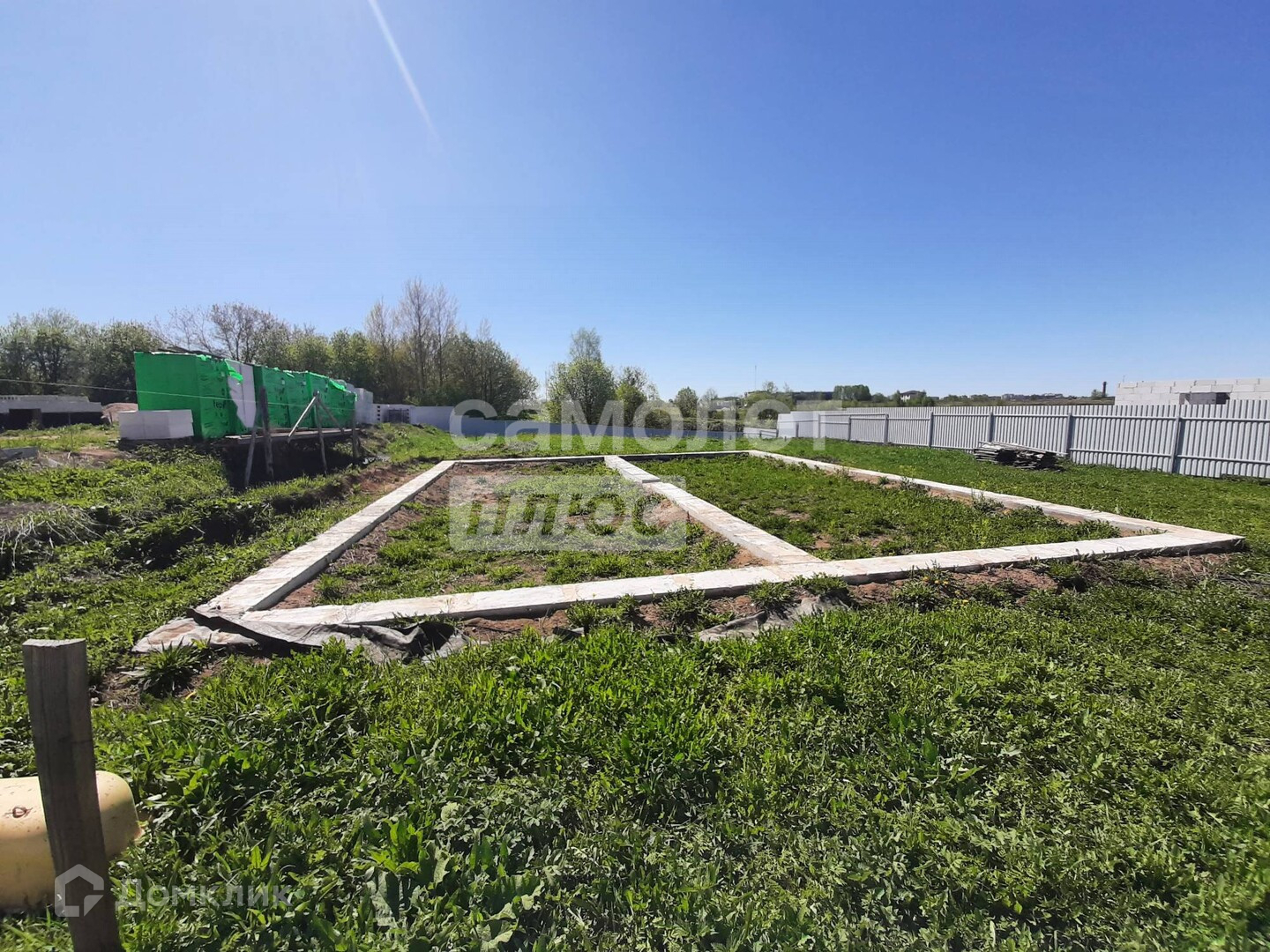 На участке имеется фундамент ленточный 10*12 м, пятистенок, ширина ленты 40 см. глубина заложения 180 см.( 30 песок, 150 бетон - из них 30 над землёй). Арматура 12 мм, бетон М 300. Электричество и вода на участке.