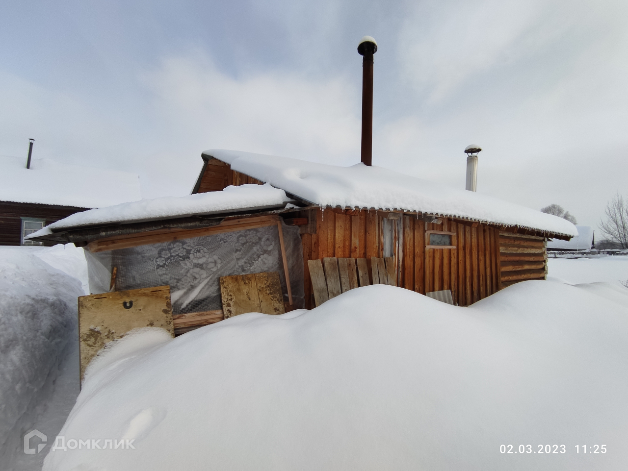 - Дом бревенчатый, с пристроем, крытым двором, сараем, дровенником, забором