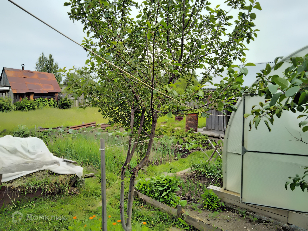 - Огород ухоженный, ягодные кусты, плодовые деревья