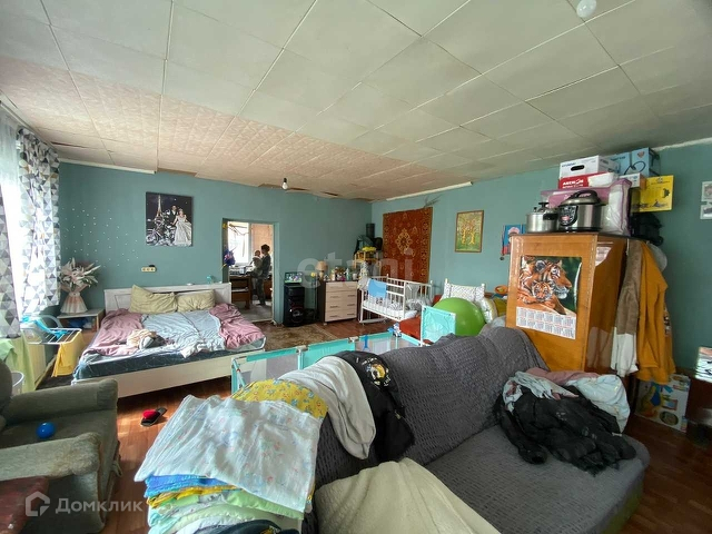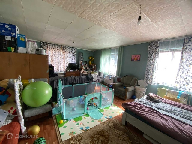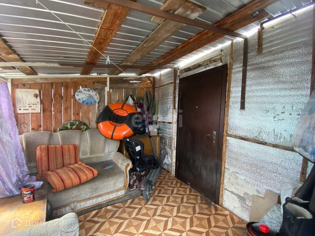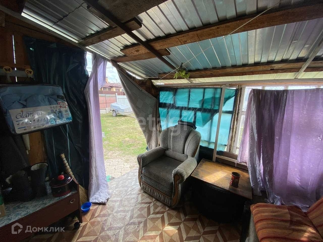 Планировка: Есть летняя пристройка, кухня, совмещенный санузел, одна большая комната (проект был под 3 стандартные комнаты). На территории двора есть хозяйственный блок для хранения инструментов и прочего сырья. Территория домовладения полностью огорожена, большой двор с местом под сад.