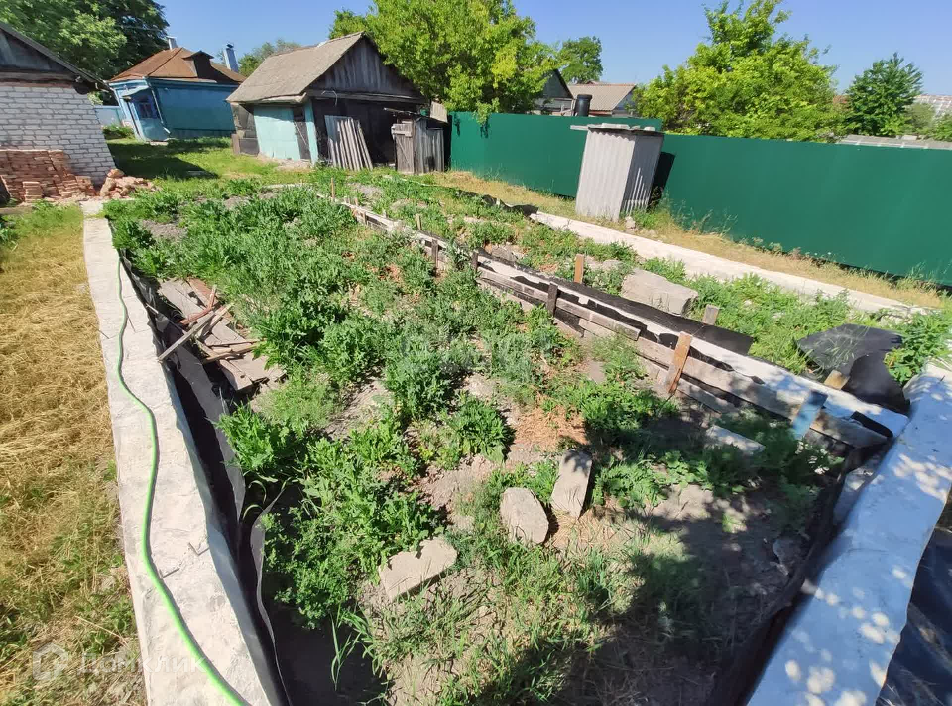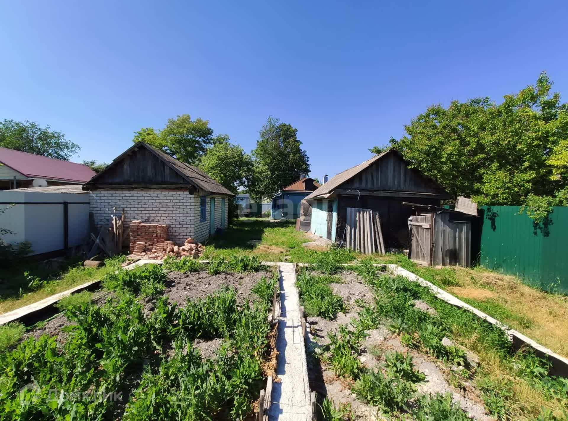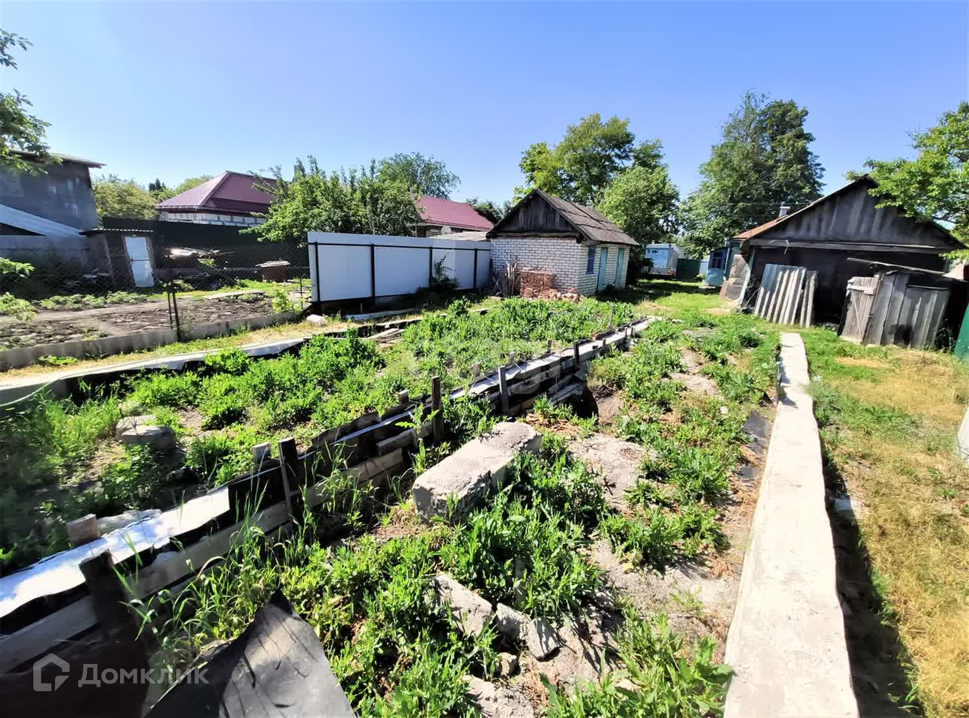 Во дворе летняя, газифицированная кухня и крепкий сарай из ракушечника, обложенного белым кирпичом.