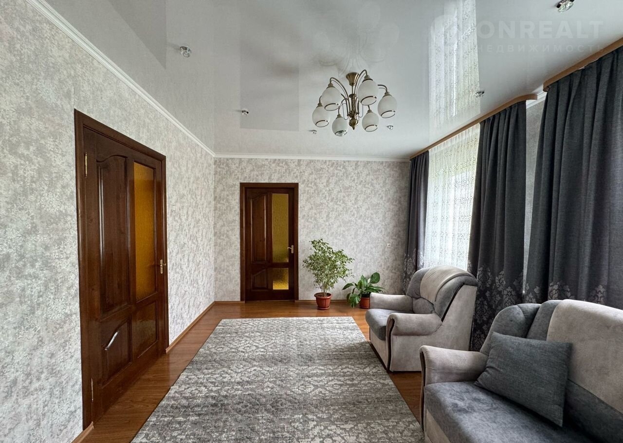 B доме 4 прoстоpные жилые комнаты, большая кухня с дополнительным выходом на улицу через балкон, раздельный санузел. Капитальный ремонт не требуется. Центральный водопровод, канализация- 2 септика, газовое отопление.