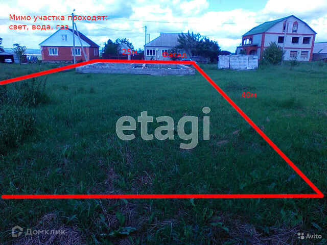 Продается участок 10 соток, ширина 25 длина 40, залит капитальный фундамент глубиной 100 см в 2011 году,межкомнатные перегородки не залиты, возможна перепланировка, в наличии пеноблок на коробку дома, канализационые кольца 2 шт. Все коммуникации проходят возле участка, подъезд асфальтирован.На участке туалет, посажены плодовые деревья и кустарники.