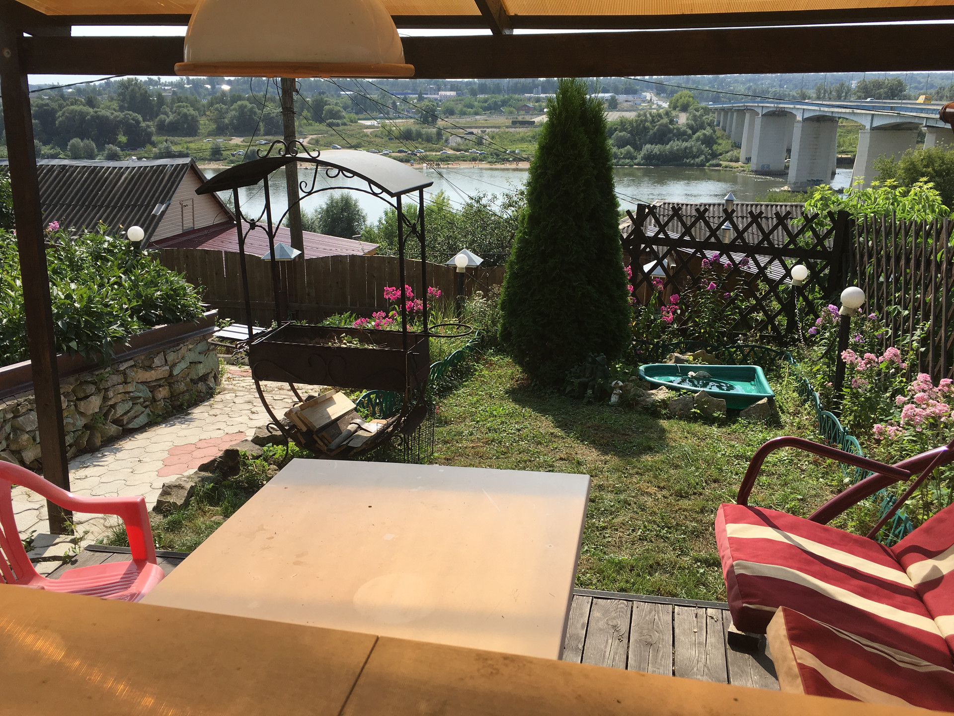 Дом-дача в центре Алексина на берегу р.Оки (100 метров).в частном секторе.. Участок на склоне к реке разработан террасами . Соседи живут круглогодично. Солнечная сторона. Рядом два пляжа и два родника. Хороший подъезд. Дом строился как капитальный..для проживания. Потом трансформировался в летнюю дачу. Стены - керамзитные блоки.,внутри утеплитель и вагонка. Фундамент- очень крепкий ленточный.монолитный. Снаружи - сайдинг. Есть подвал. Три зоны отдыха. Все с навесами . Дорожки и зоны - тротуарная плитка .все остальное - газонная трава. БАНЯ на дровах с шезлонгами для отдыха.