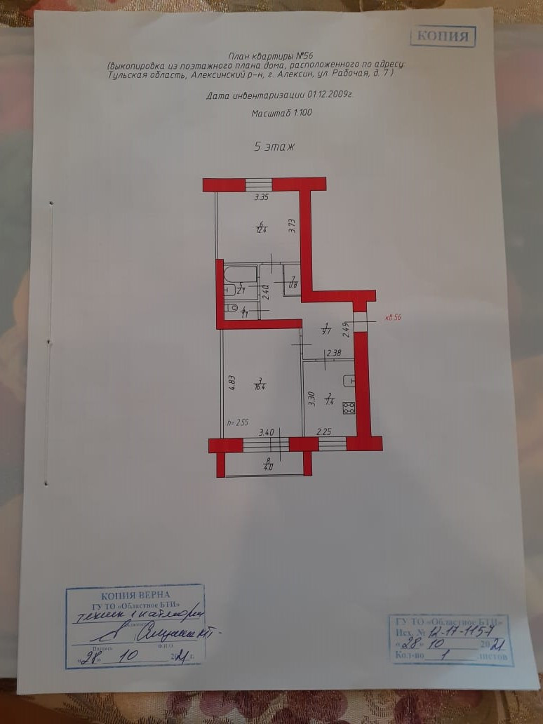 2-комнатная квартира, 50 м2, этаж 5 / 5, на продажу в Алексине, Рабочая улица, 7