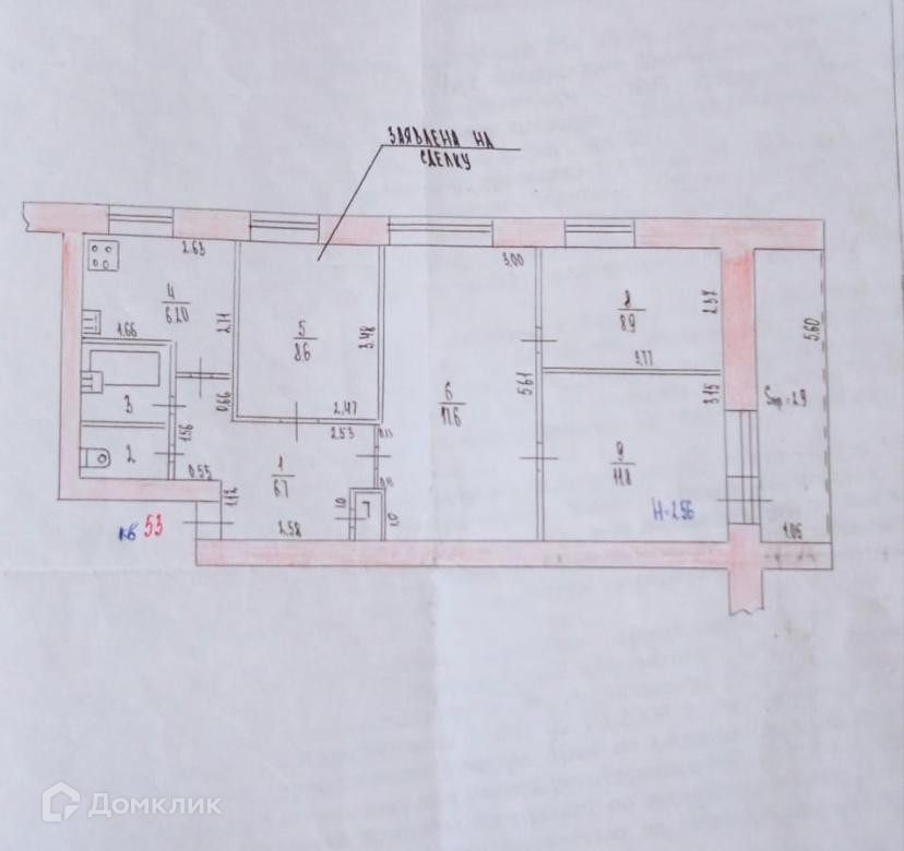 Общая площадь 65.6 м2
