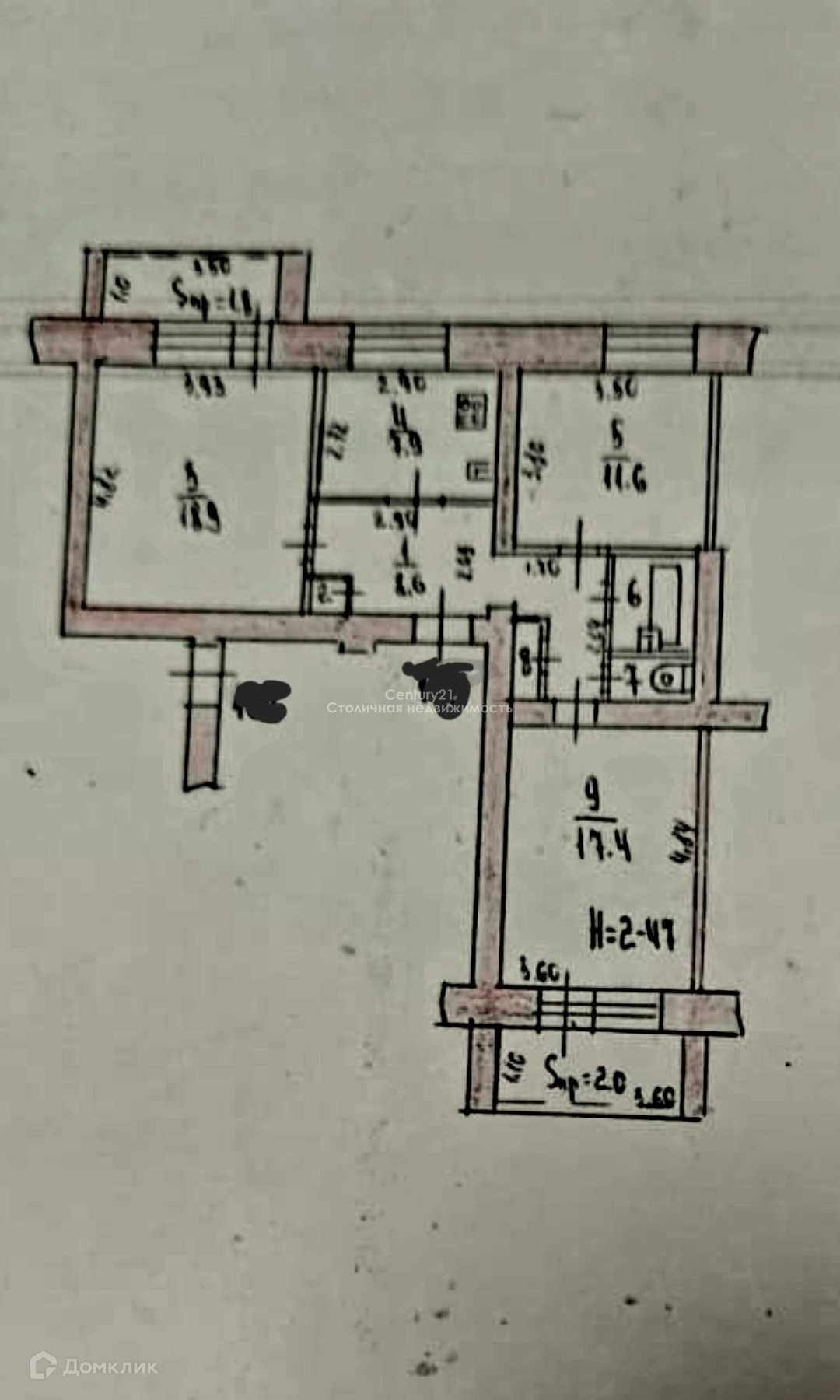 изолированные комнаты 18.9+17.4+11.6