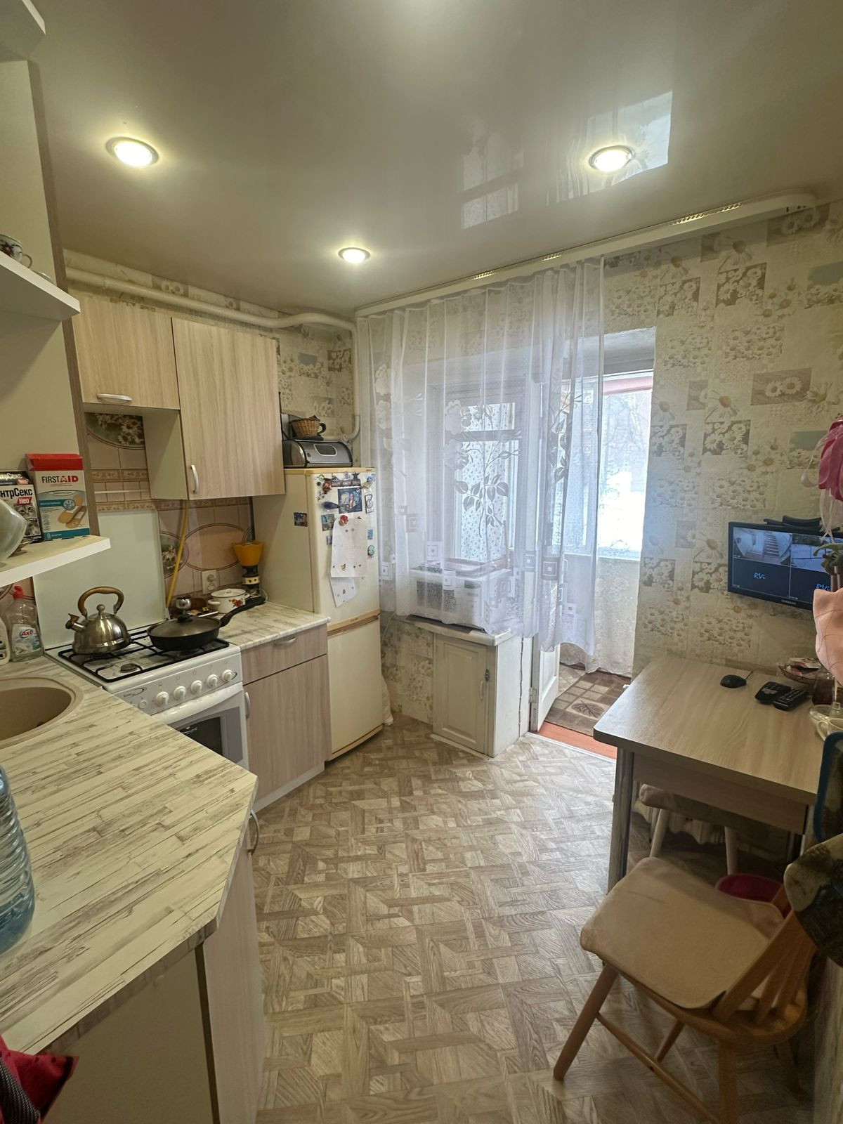 Хороший линолеум,натяжные потолки,стеклопакет.
