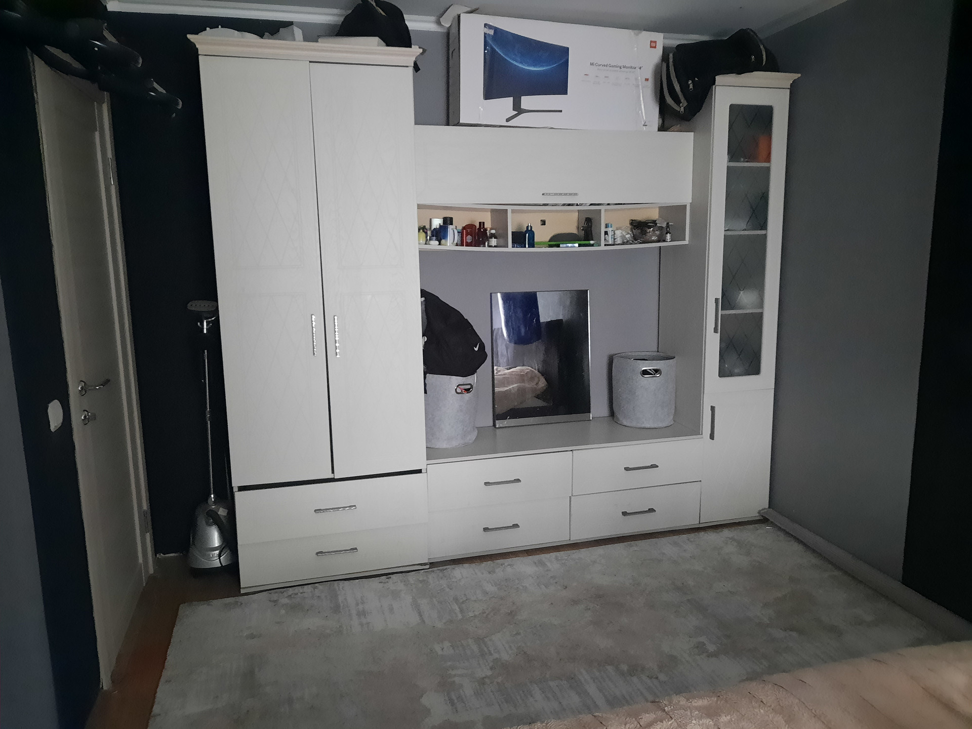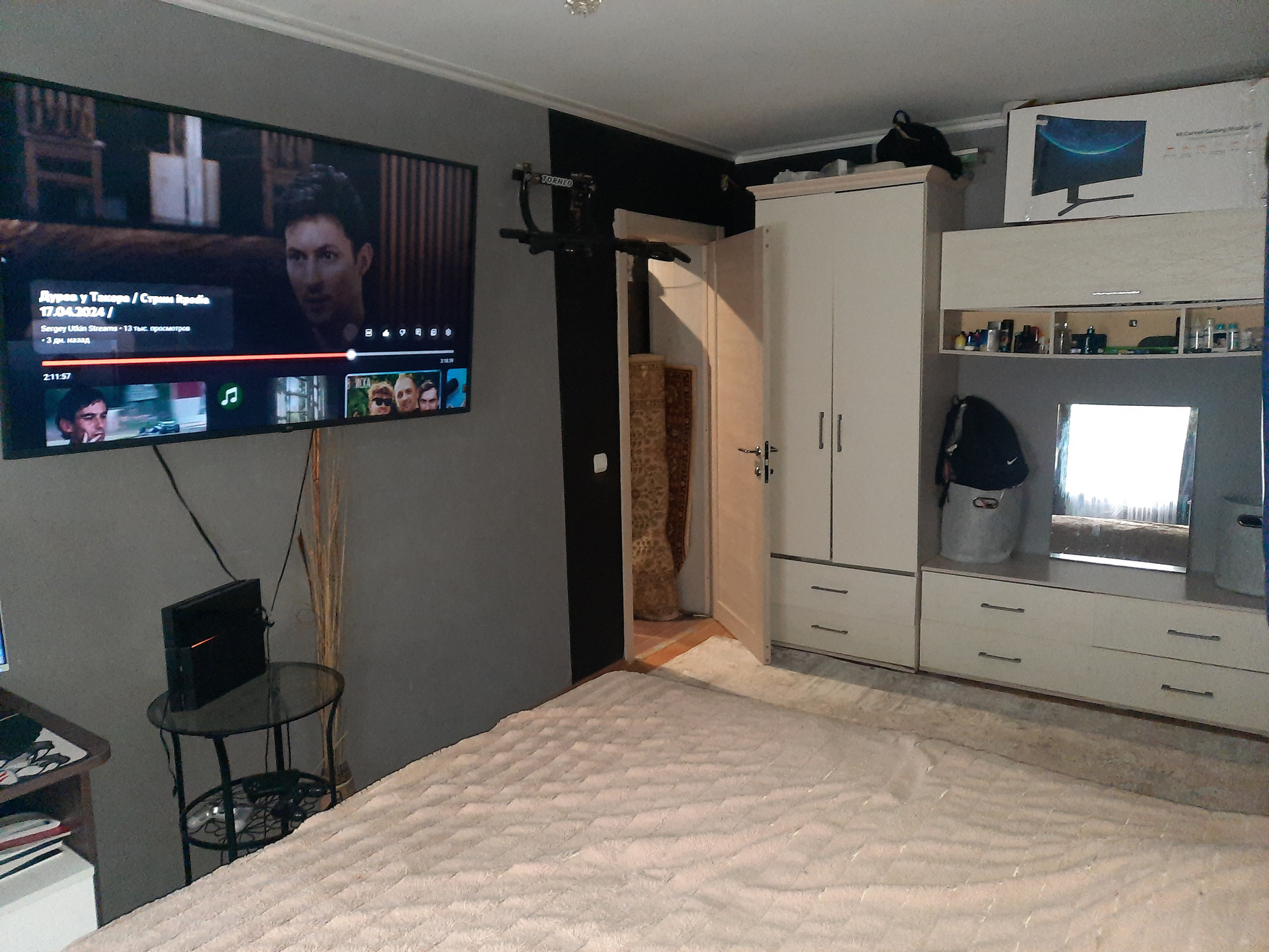 В спальной комнате установлена двухспальная кровать, шкаф, а также иная мебель и техника.