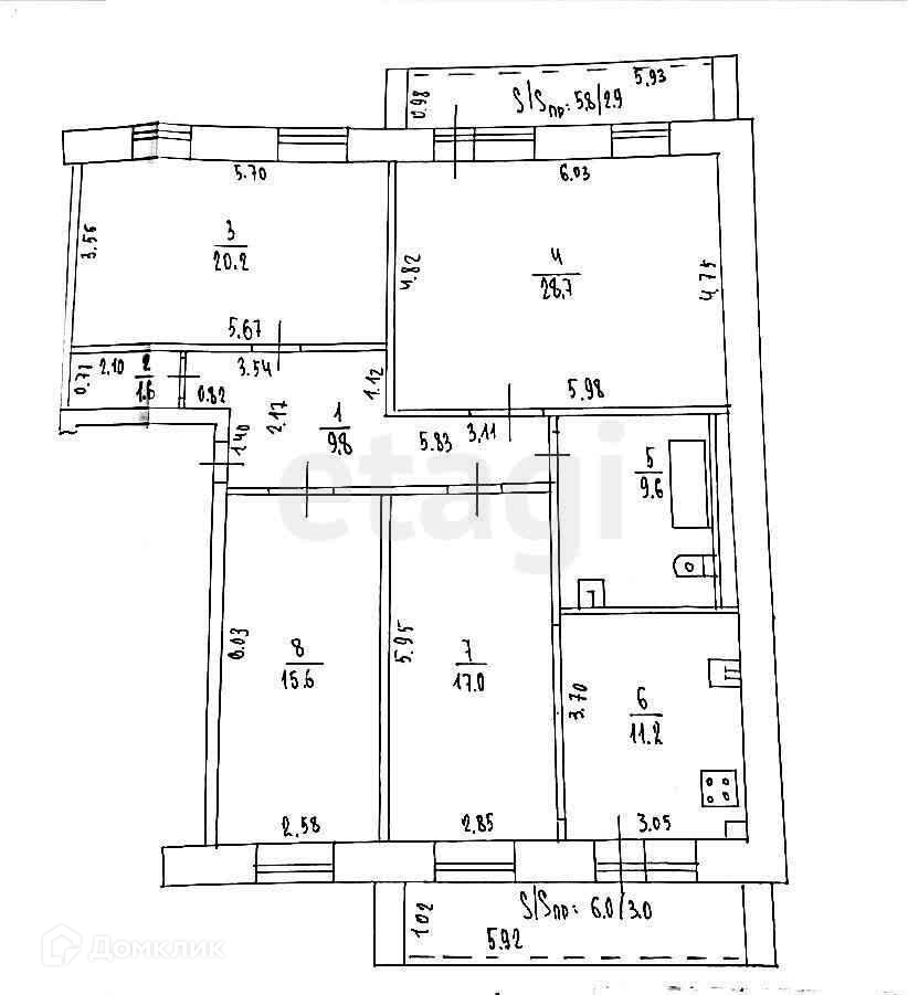 Балкон, лоджия 1 балкон