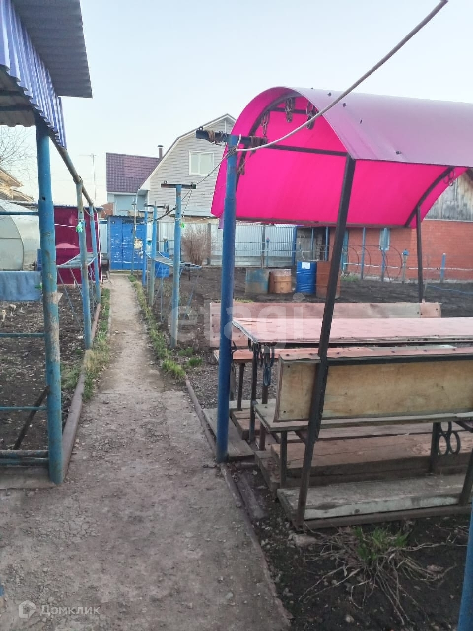 Участок ровный, ухоженный. На участке есть гараж, кирпичная действующая баня и теплица из поликарбоната. Так же есть беседка для Посиделок.