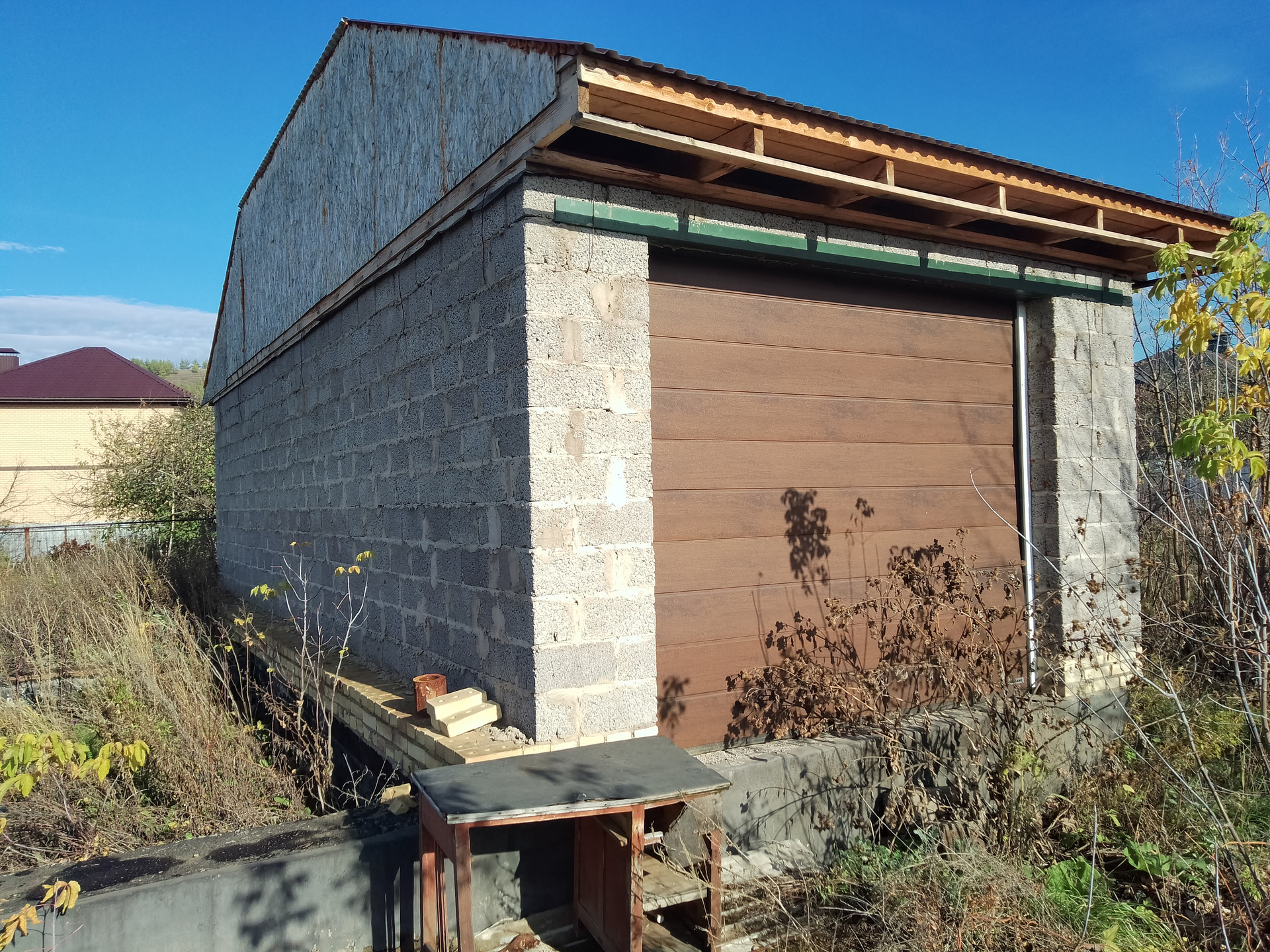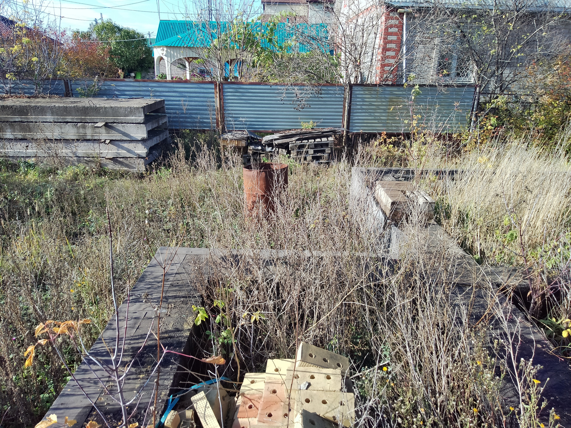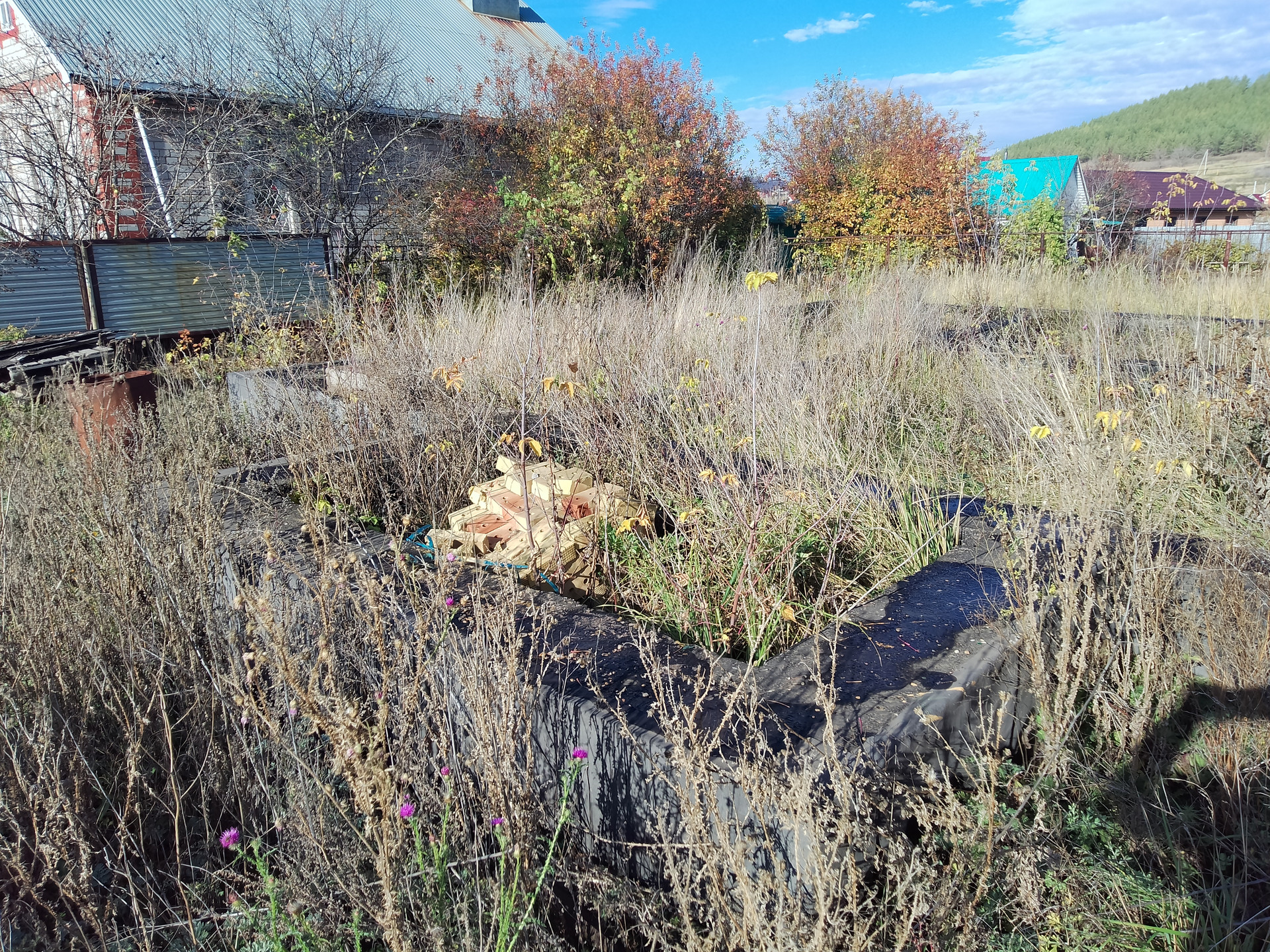 Хороший участок, есть фундамент и часть здания построены с крышей. Дорога асфальтированная, в шаговой доступности магазины, аптека, детский садик