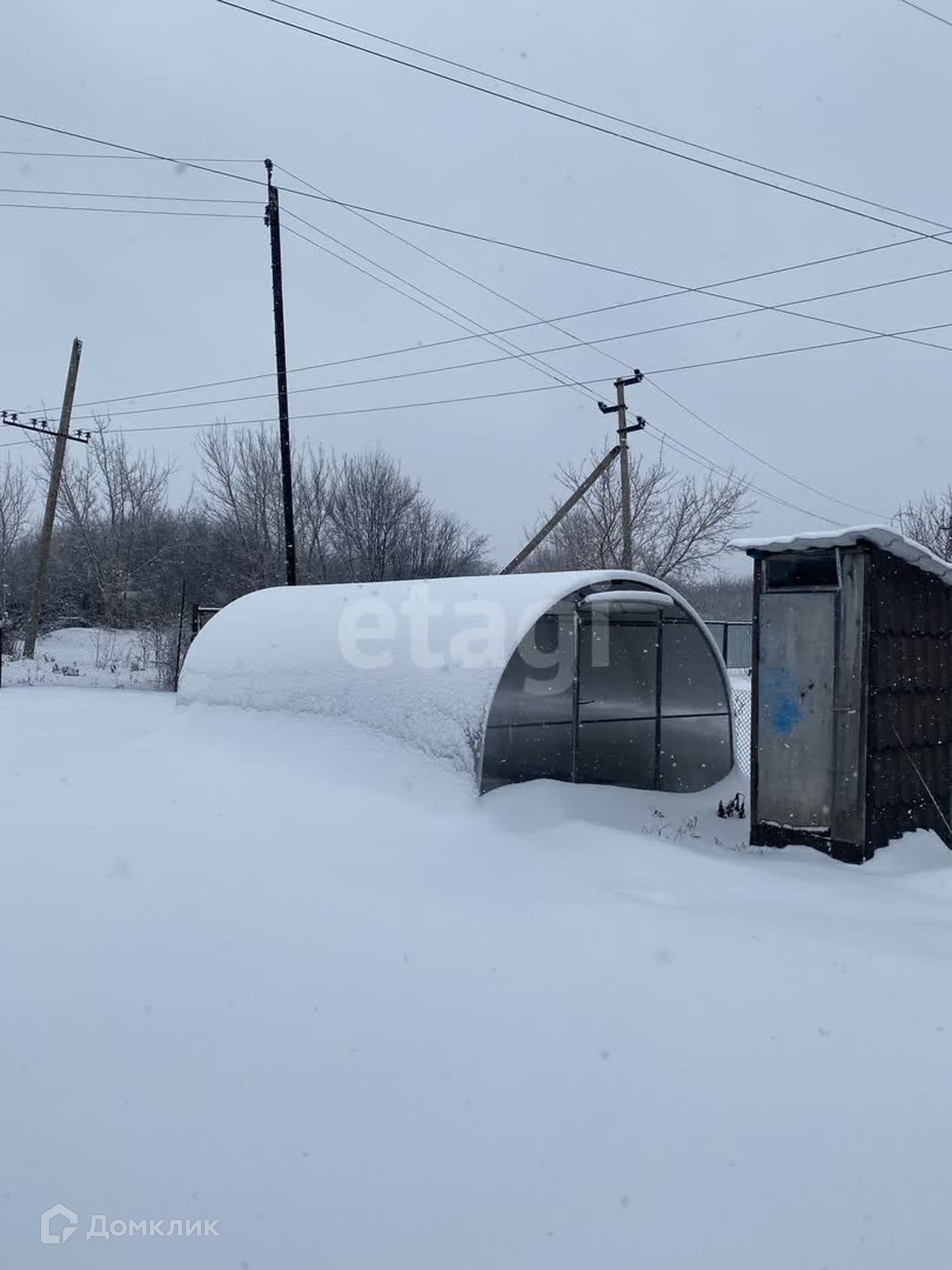 Участок ровный, огорожен сеткой рабицей. На участке расположены недостроенная баня, теплица.