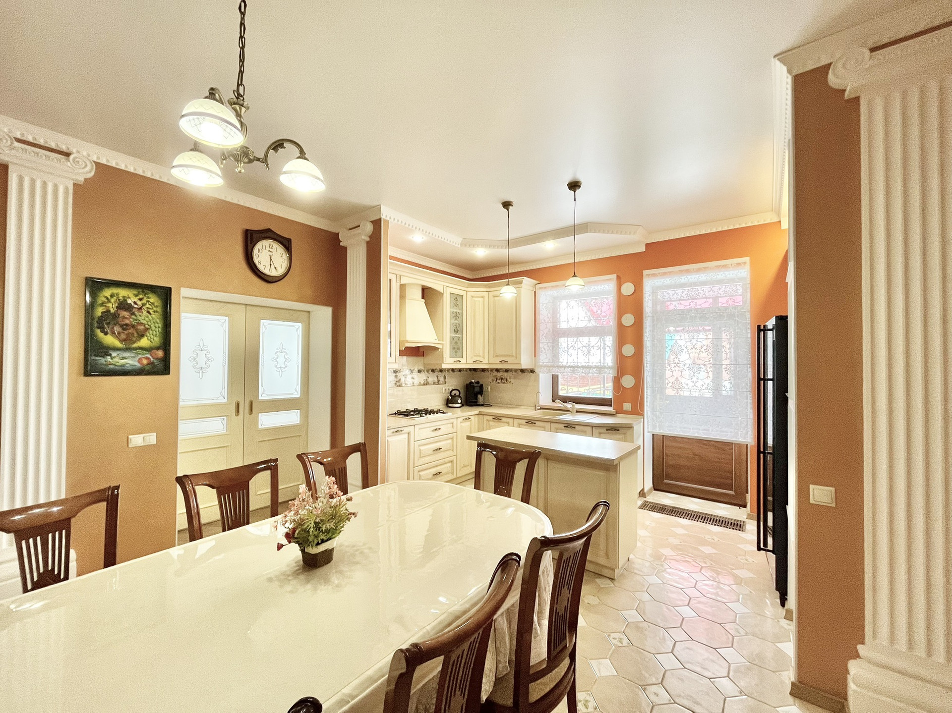 - В доме проведен капитальный ремонт в конце 2018 года, интерьер выполнен в классическом стиле из высококачественных материалов, полностью заменена система отопления, установлен качественный двухконтурный котел (с дополнительным бойлером и рециркуляцией горячей воды), теплые полы. Заменена система электроснабжения. Сделан дополнительный выход из кухни в зону барбекю.