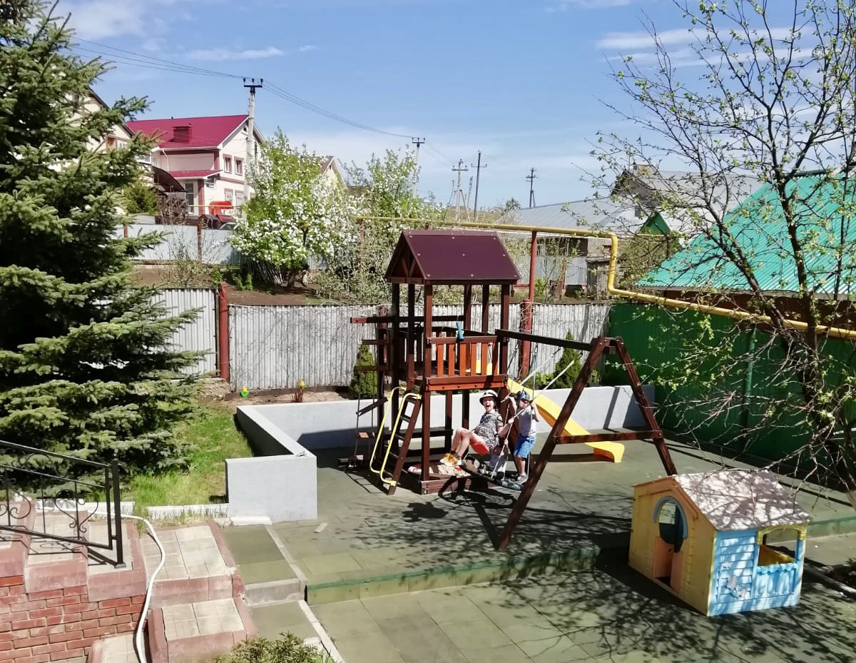 - Рядом с домом отапливаемый гараж на две машины, детская игровая площадка с безопасным резиновым покрытием, спортивным комплексом, оборудовано место для отдыха, беседка. Баня на дровах.