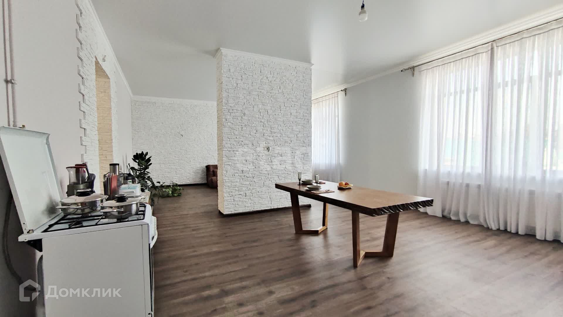 На первом этаже хорошее настроение обеспечит светлый холл, кухня-гостиная 33м2 и зал 30м2, оформленные в едином стиле. Кухня-гостиная и зал разделены широкой колонной. Стены и колонна облицованы декоративными кирпичиками ручной работы. Большая 4х3м комфортная ванная комната в итальянском кафеле. Санузел совмещен.
