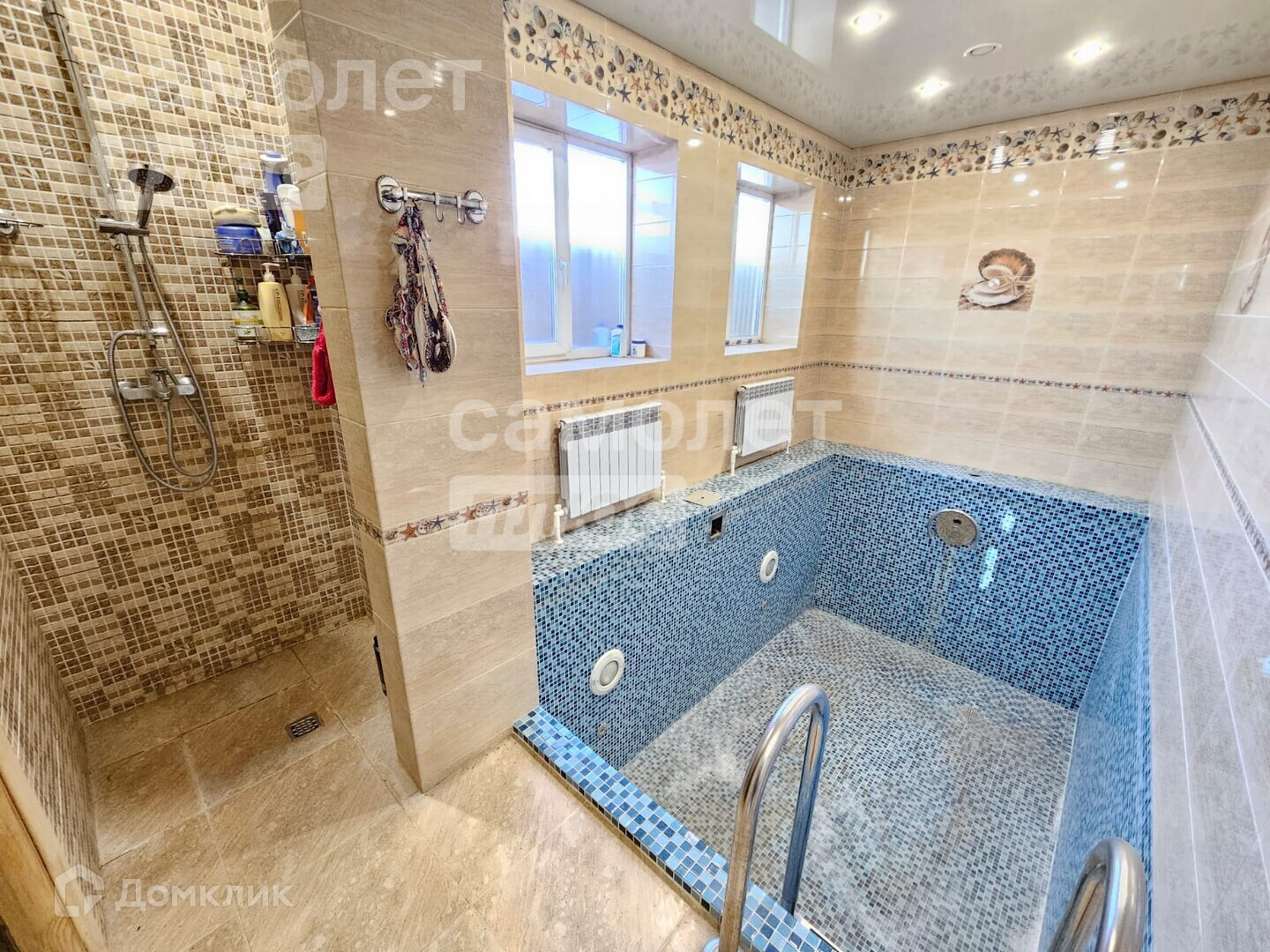 На участке имеется баня. Ленточный фундамент на буро-набивных сваях. Стены - цементно-песчаные блоки, толщиной 250мм. В бане бассейн с противотоком, душ, с/у, техническая комната для обслуживания бани. На территории участка теплица размеры 3 на 6, большой вольер. На участке растет яблоня, рябина, туи.