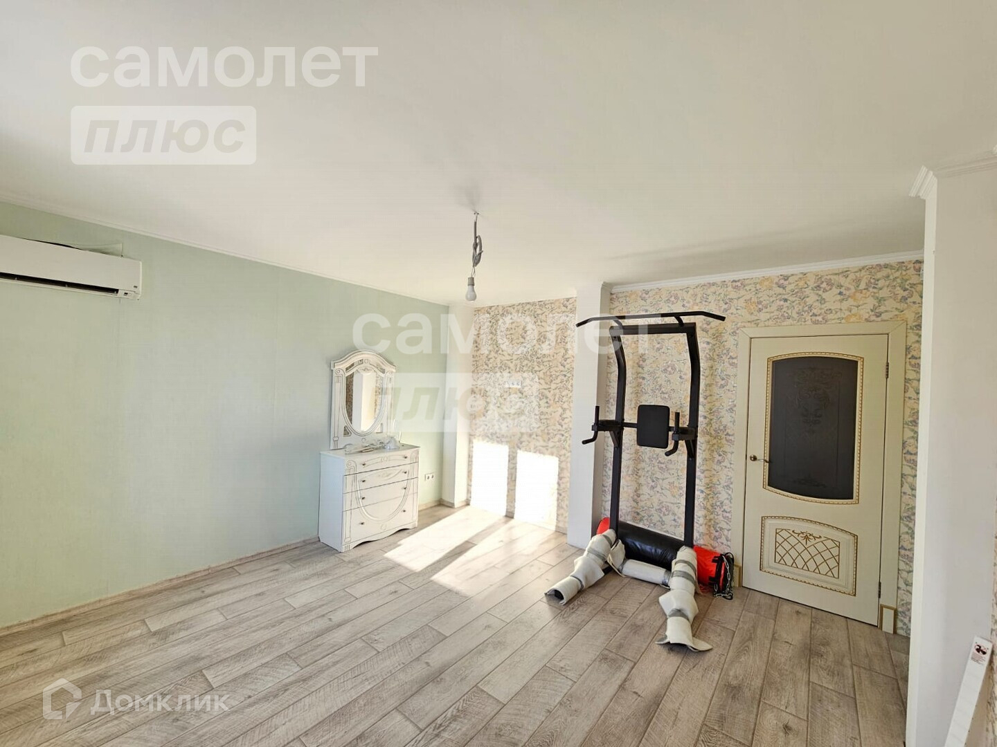 Тёплый пол по всему первому этажу. Покрытие пола на первом этаже - плитка, в спальне - ламинат. В спальне установлен кондиционер.
