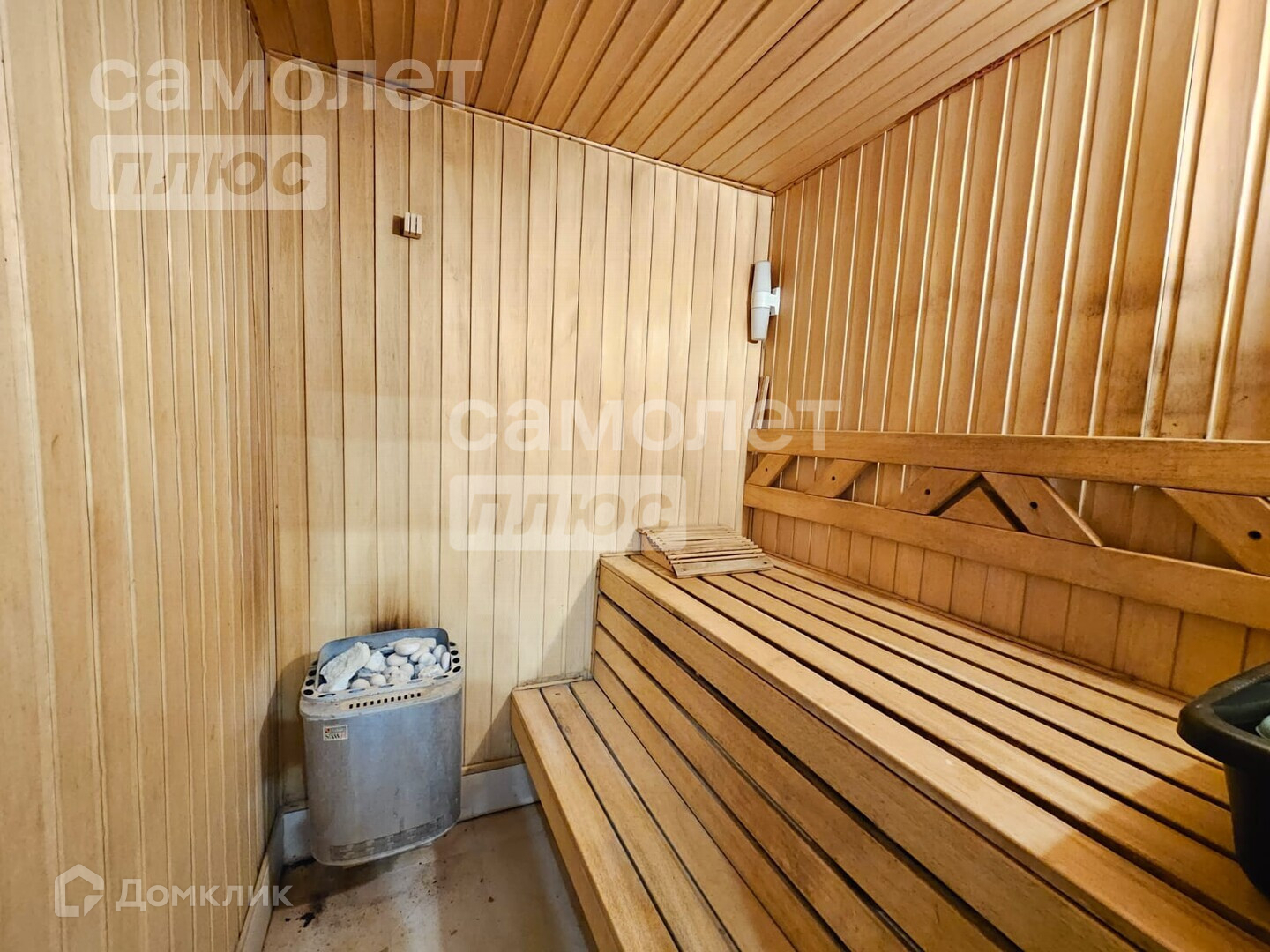 На первом этаже спальня, гардеробная, с/у, кухня, гостиная с выходом в баню.