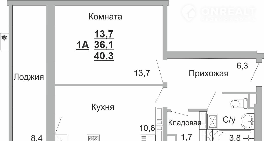 Общая площадь 40.3 м2