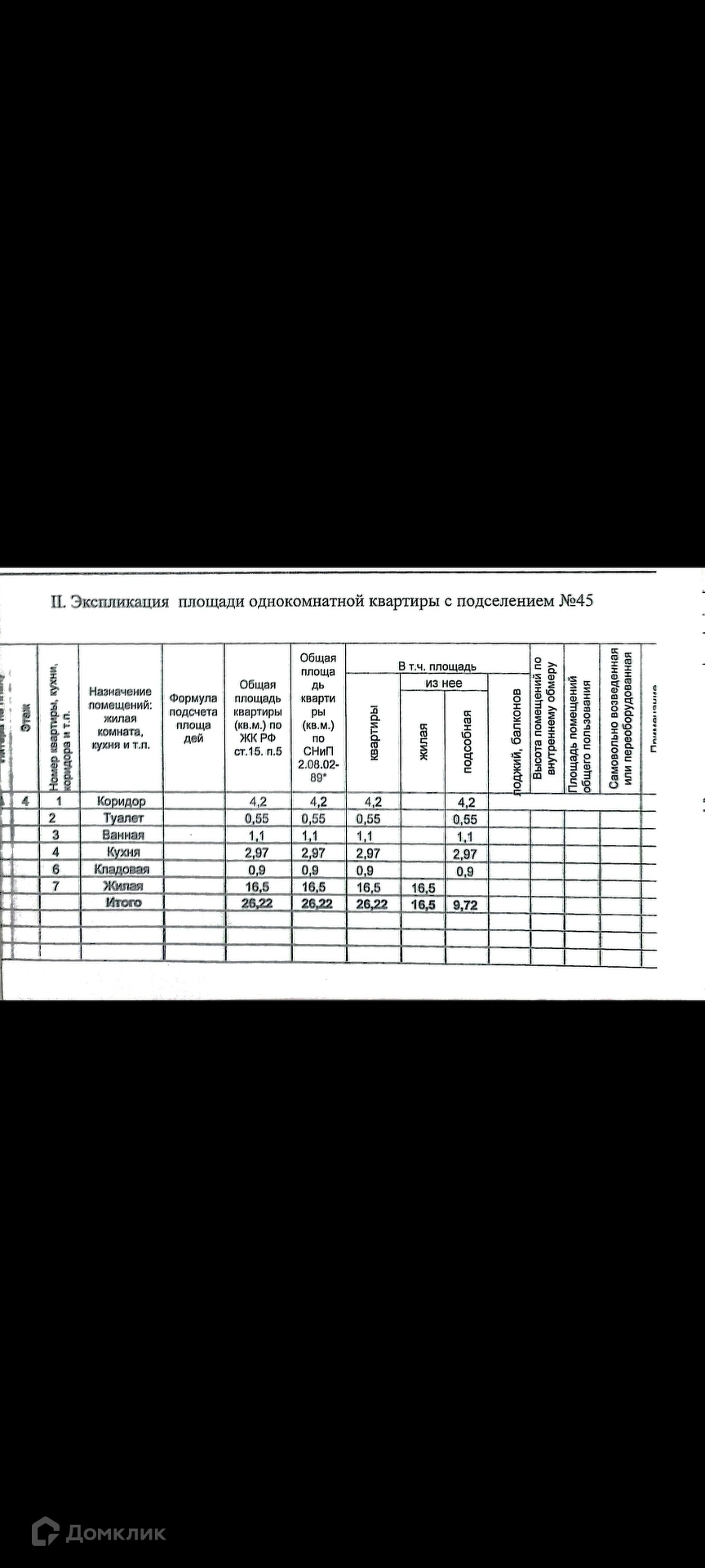 Общая площадь 26 м2