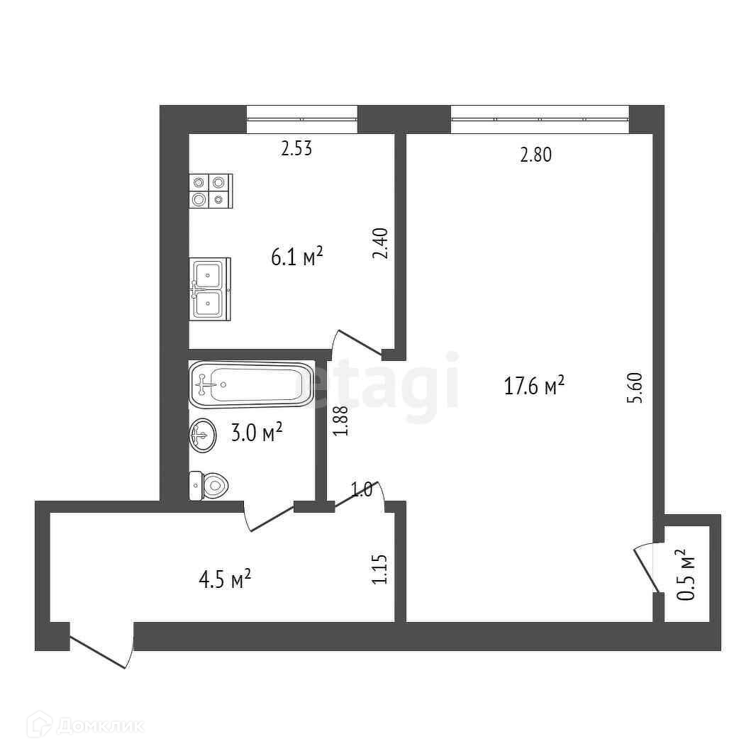 Общая площадь 31.7 м2