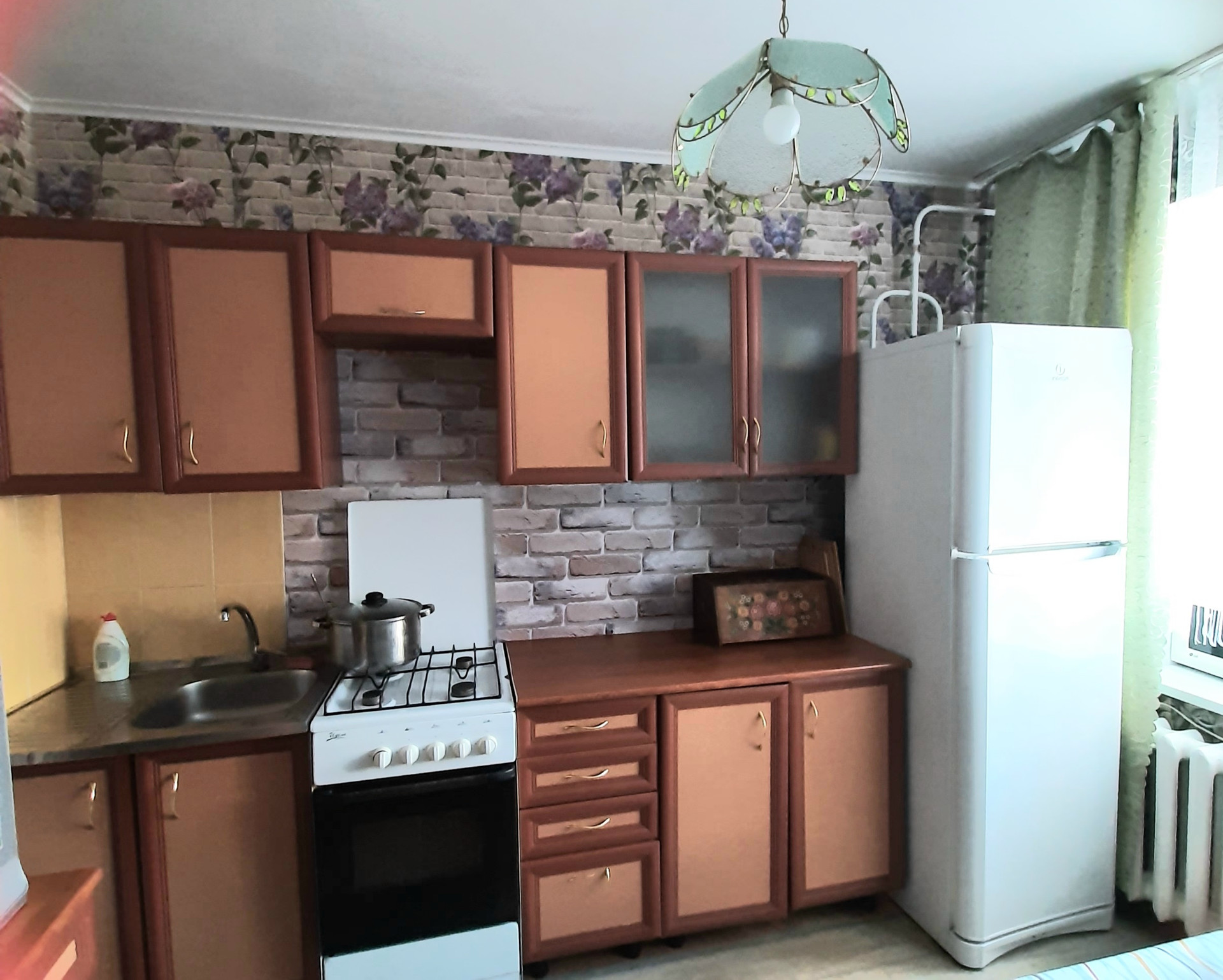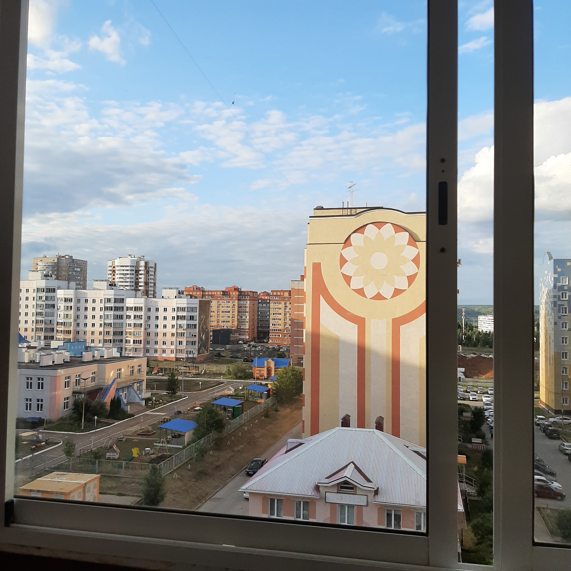 Благоустроенный район: школу и садик видно из окна,во дворе современная детская площадка, не далеко от дома сквер для прогулок. В доме есть продуктовые магазины.