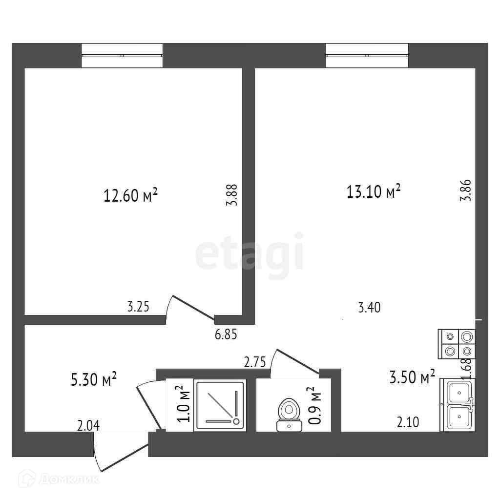 Кухня объединена с гостиной, что в условиях небольшой площади является существенным преимуществом, без дополнительных стен и дверей, создавая больше простора и увеличивая пространство.