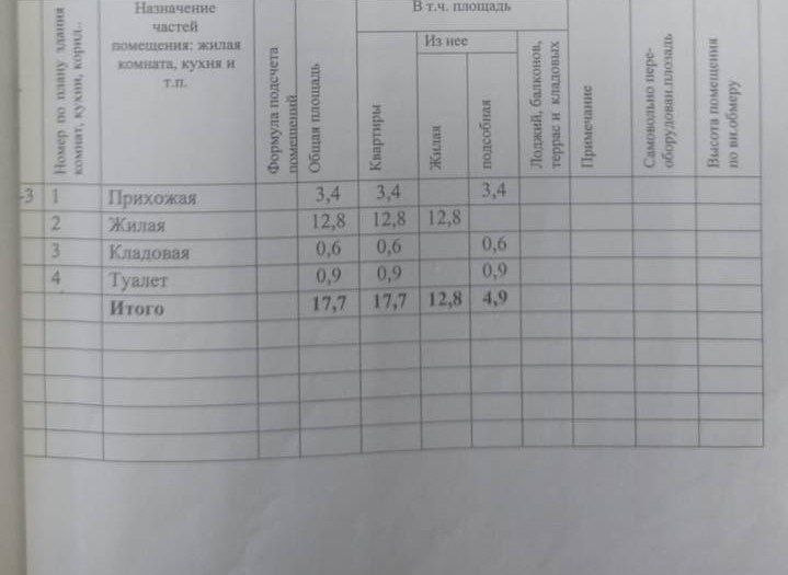 Общая площадь 17.7 м2