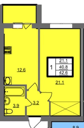 Общая площадь 42.6 м2