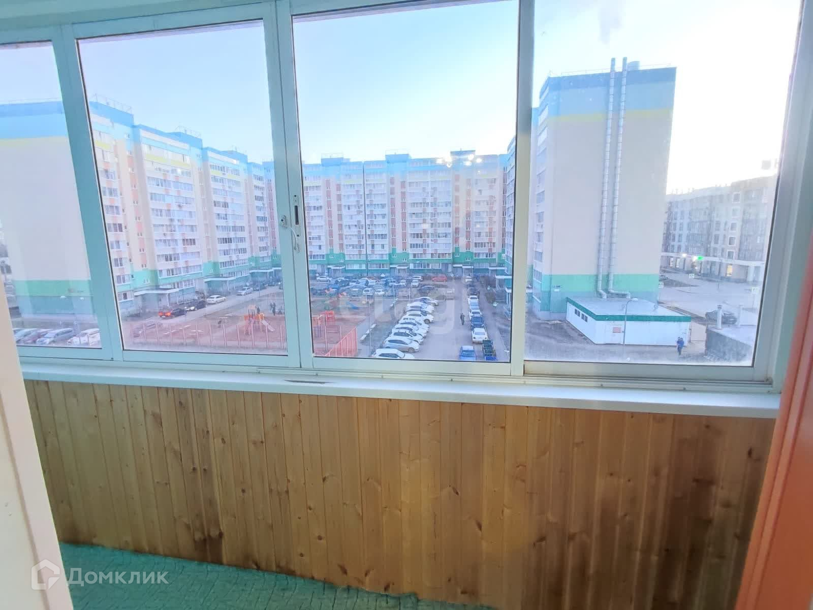 Лоджия обшита деревянной вагонкой.